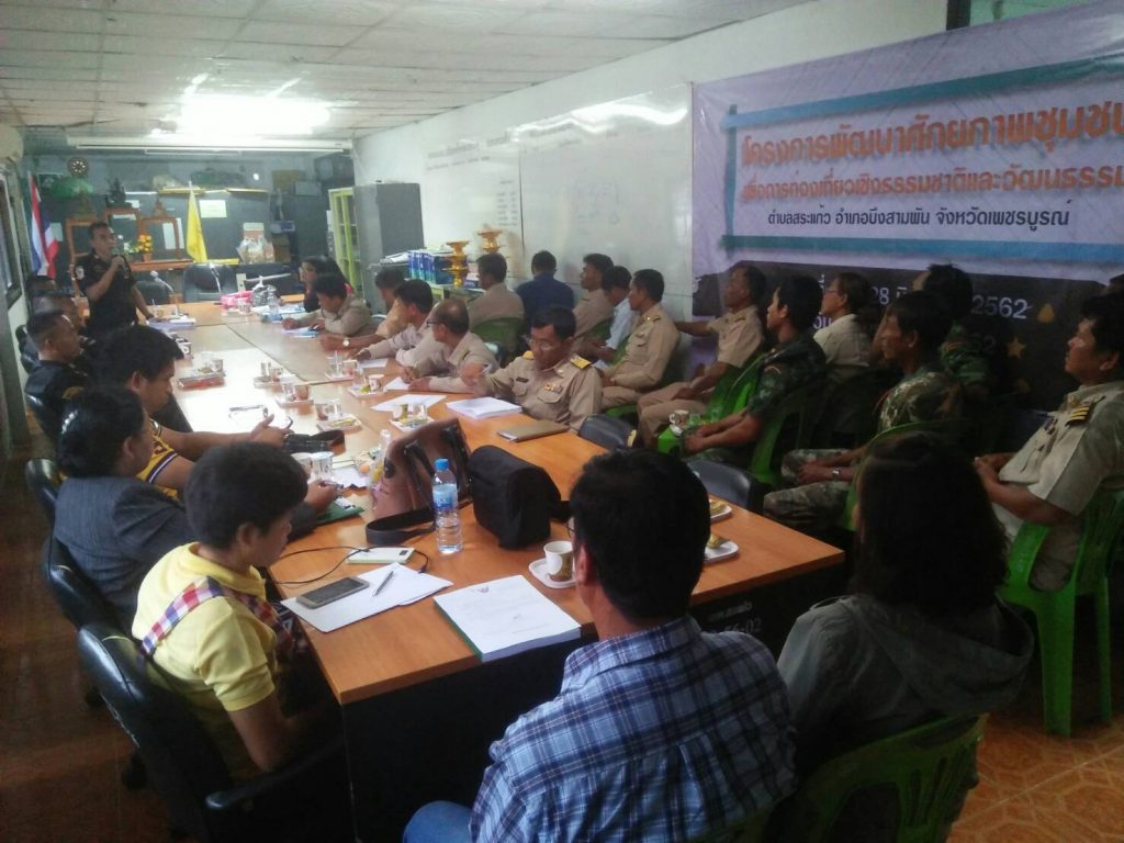 วันที่ 2 ก.ค.62 เวลา 13.00 น. หน่วยป้องกันและพัฒนาป่าไม้วิเชียรบุรี, จนท.หน่วยป้องกันรักษาป่าที่ พช 3(ลำจังหัน) พช 7 (น้ำร้อน) ได้เข้าร่วมประชุมเชิงปฏิบัติการตามโครงการพัฒนาศักยภาพชุมชนเพื่อการท่องเที่ยวเชิงธรรมชาติและวัฒนธรรม ต.สระแก้ว อ.บึงสามพัน จ.เพชรบูรณ์ จัดโดยคณะมนุษย์ศาตร์และสังคมศาตร์ มหาวิทยาลัยราชภัฎเพชรบูรณ์ โดยมี เจ้าหน้าที่องค์การบริหารส่วนตำบลสระแก้ว, กำนัน,ผู้ใหญ่บ้าน , สมาชิก อบต.ของตำบลสระแก้ว เข้าร่วมประชุมโดยมีนายกองค์การบริหารส่วนตำบลสระแก้วเป็นประธาน