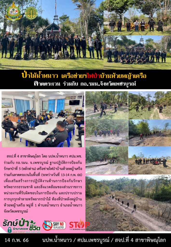 ป่าไม้น้ำหนาว เครือข่ายฯไฟป่าบ้านห้วยหญ้าเครือ ลาดตระเวน ร่วมกับ กอ.รมน.จ.เพชรบูรณ์