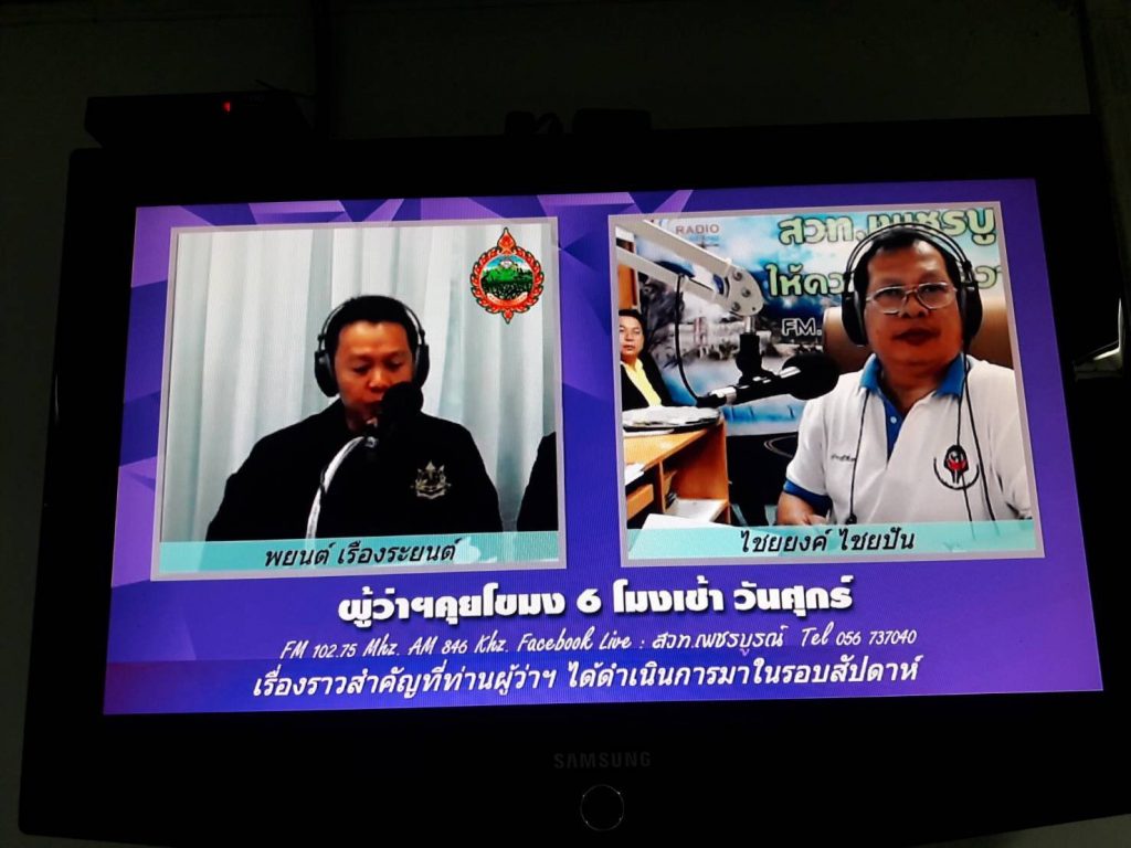 วันที่ 22 พย.2562 เวลา 06.10-07.00 น. นายพยนต์ เรืองระยนต์ ผู้อำนวยการศูนย์ป่าไม้เพชรบูรณ์ ร่วมออกอากาศทางสถานีวิทยุกระจายเสียงแห่งประเทศไทย เพชรบูรณ์ รายการ “ผู้ว่าคุยโขมง หกโมงเช้าวันศุกร์” ในหัวข้อป่าชุมชน ณ สวท.เพชรบูรณ์