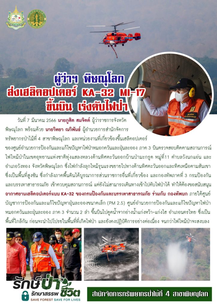 ผู้ว่าฯ พิษณุโลก ส่งเฮลิคอปเตอร์ KA-32 MI-17 ขึ้นบิน เร่งดับไฟป่า