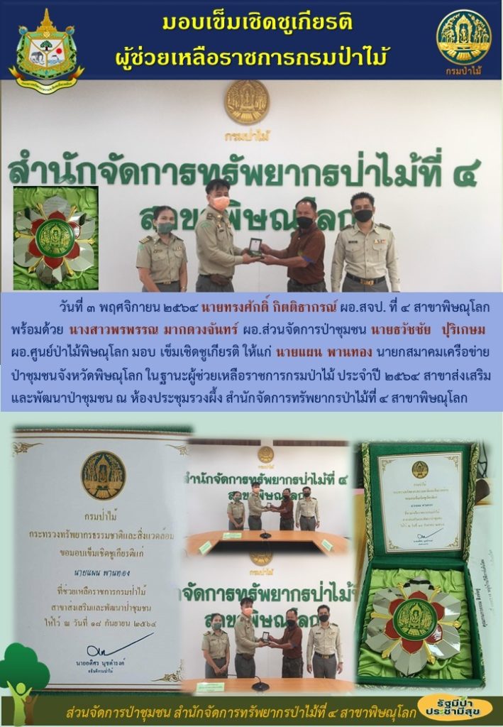 มอบเข็มเชิดชูเกียรติ ผู้ช่วยเหลือราชการกรมป่าไม้