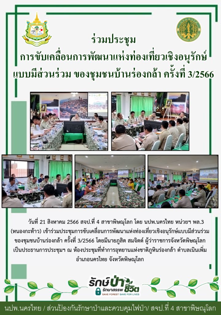 ร่วมประชุมการขับเคลื่อนการพัฒนาแห่งท่องเที่ยวเชิงอนุรักษ์แบบมีส่วนร่วม ของชุมชนบ้านร่องกล้า ครั้งที่ 3/2566