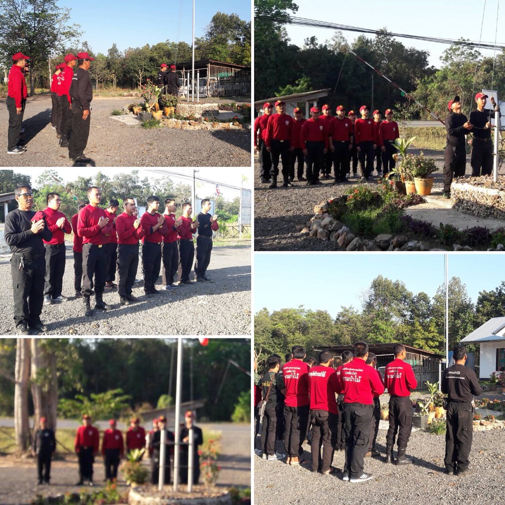 กิจกรรมที่ 1 เวลา 08.00 น. เจ้าหน้าที่ชุดปฏิบัติการพิเศษ (เหยี่ยวไฟ) เข้าแถวเชิญธงเคารพธงชาติ