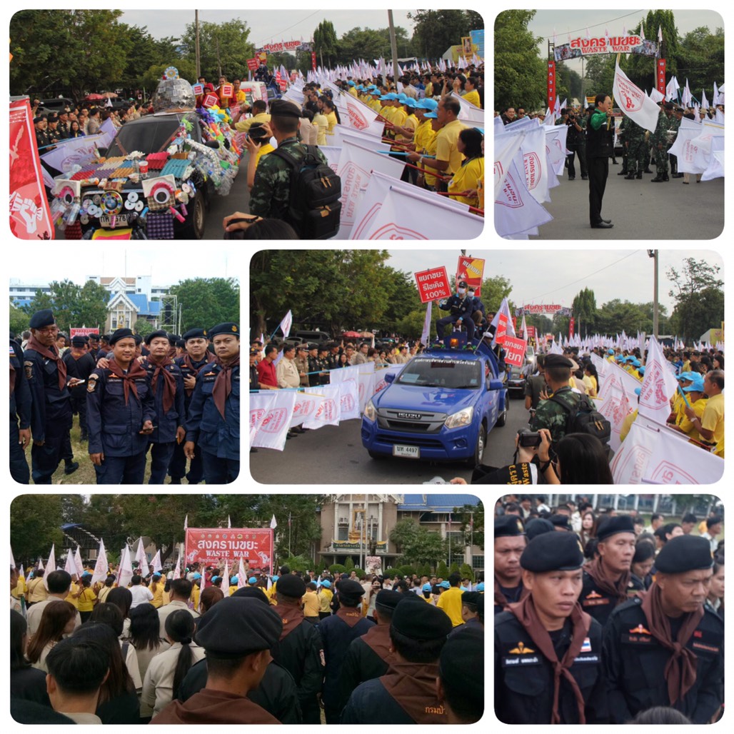วันที่ 29 พฤศจิกายน 2561 เวลา 08:29 น. สจป.ที่ 4 สาขาพิษณุโลก โดยนายเจน ทาฟอง ผอ.ส่วนอำนวยการ นายบัณฑิต วงศ์เสนานุรักษ์ ผอ.ส่วนโครงการพระราชดำริฯ นายสมบูรณ์ จำปาอูป ผอ.ส่วนป้องกันรักษาป่าฯ ,ผอ.ศูนย์ป่าไม้พิษณุโลก พร้อมเจ้าหน้าที่สำนักฯ ศูนย์ป่าไม้พิษณุโลก และหน่วยป้องกันรักษาป่าท้องที่จังหวัดพิษณุโลก จำนวน 100 คน ร่วมกิจกรรม “ประกาศสงครามขยะจังหวัดพิษณุโลก” โดยมีข้าราชการ ลูกจ้าง พนักงาน นักเรียน นักศึกษา หน่วยงานภาคเอกชน องค์กร ชุมชน จากทุกภาคส่วนเข้าร่วมกิจกรรมรวมกว่า 5,000 คน ร่วมปฏิญาณ และปล่อยขบวนรถติดเครื่องขยายเสียงติดป้ายรณรงค์ประกาศสงครามขยะจังหวัดพิษณุโลก ที่ร่วมขบวนรณรงค์จากทั้ง 9 อำเภอ รวมกว่า 230 คัน โดยนายพิพัฒน์ เอกภาพันธ์ ผู้ว่าราชการจังหวัดพิษณุโลก เป็นประธานเปิดงาน นำกล่าวปฏิญาณ “ประกาศสงครามขยะจังหวัดพิษณุโลก”และปล่อยขบวนรถฯ ณ สนามหน้าศาลากลางจังหวัดพิษณุโลก