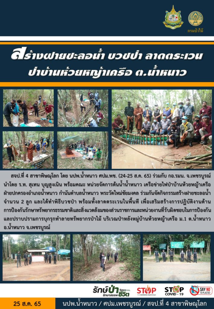 สร้างฝายชะลอน้ำ บวชป่า ลาดตระเวนป่าบ้านห้วยหญ้าเครือ ต.น้ำหนาว