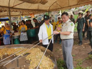 วันที่ 19 กรกฎาคม 2561 ส่วนจัดการป่าชุมชน สำนักจัดการทรัพยากรป่าไม้ที่ 4 สาขาพิษณุโลก จัดกิจกรรมโครงการประชารัฐร่วมใจ ปลูกต้นไม้ให้แผ่นดิน ตามโครงการธนาคารอาหารชุมชน (Food Bank) ณ ป่าชุมชนบ้านห้วยไผ่ หมู่ที่ 8 ตำบลวังนกแอ่น อำเภอวังทอง จังหวัดพิษณุโลก เนื้อที่ 350 ไร่ โดยนายภัคพงศ์ ทิวพัฒน์ ผู้ว่าราชการจังหวัดพิษณุโลกเป็นประธานในพิธีเปิด นายบุญลาภ สุกใส ผู้อำนวยการสำนักจัดการทรัพยากรป่าไม้ที่ 4 สาขาพิษณุโลก กล่าวรายงาน นายอำเภอวังทอง กล่าวต้อนรับ ผู้ร่วมงาน พล.ต.สรายุทธ ปาลิวนิช รอง ผอ.รมน.จังหวัด พ.ล.(ท.) นายมนต์ชัย วิวัฒน์ธนาฒย์ นายก อบจ. พล. หัวหน้าหน่วยงานราชการ ทหาร ตำรวจ เครือข่ายป่าชุมชน เครือข่าย รสทป. ผู้นำชุมชนทุกหมู่บ้าน นักเรียน นักศึกษา พระภิกษุสงฆ์ และภาคเอกชน เข้าร่วมประมาณ 3,600 คน เพื่อร่วมปลูกไม้ป่า พืชสมุนไพร เพื่อฟื้นฟูสภาพป่า และเป็นแหล่งอาหารของชุมชนในพื้นที่ป่าชุมชนบ้านห้วยไผ่ ซึ่งดำเนินการโครงการธนาคารอาหารชุมชน (Food Bank) ตามแผนการปฏิบัติงาน กิจกรรมบริหารจัดการป่าชุมชนเพื่อพัฒนาคุณภาพชีวิต ประจำปีงบประมาณ พ.ศ. 2561 พร้อมแจกจ่ายกล้าไม้ และผู้ว่าราชการจังหวัดพิษณุโลก ร่วมผัดไทกระทะยักษ์เพื่อแจกจ่ายผู้ร่วมงาน