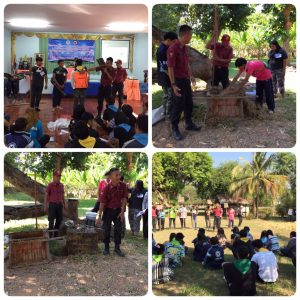 วันที่ ๒๑ ธ.ค. ๖๑ เวลา ๐๘.๐๐ – ๑๖.๐๐ น. สจป.ที่ ๔ สาขาพิษณุโลก โดยหน่วยส่งเสริมการควบคุมไฟป่าเพชรบูรณ์ ได้มอบหมายให้เจ้าหน้าที่จัดนิทรรศการเกี่ยวกับความรู้เรื่องไฟป่า และแจกจ่ายเอกสาร แผ่นพับเกี่ยวกับความรู้เรื่องไฟป่าเบื้องต้น จำนวน ๖๐ แผ่น พร้อมเป็นวิทยากรบรรยายความรู้เรื่องไฟป่า ทั้งภาคทฤษฎีและภาคปฏิบัติ การใช้อุปกรณ์ดับไฟ วิธีและเทคนิคการควบคุมไฟป่า การทำแนวกันไฟ กฎหมายที่เกี่ยวข้องกับการควบคุมไฟป่า การลดปริมาณเชื้อเพลิงโดยการใช้กล่องลดปริมาณเชื้อเพลิง ตามโครงการฝึกอบรมโครงการค่ายฝึกอบรมอาสายุวกาชาด หลักสูตรพื้นฐานยุวกาชาด น้อมนำคุณธรรม นำพาชีวิตสดใสห่างไกลยาเสพติด อนุรักษ์ทรัพยากรธรรมชาติและสิ่งแวดล้อม กศน.อำเภอวิเชียรบุรี รุ่นที่ ๔๖๑๓ / พช.๖๕ จัดโดย กศน. อำเภอวิเชียรบุรี ณ ไร่ศรีวรรณ ต.นายม อ.เมืองเพชรบูรณ์ จ.เพชรบูรณ์ โดยมีว่าที่ร้อยตรี ประจวบ เจนชัย ผู้อำนวยการ กศน. อำเภอวิเชียรบุรี จังหวัดเพชรบูรณ์ เป็นประธานในพิธีฯ มีคณะครูและนักเรียนเข้าร่วมฯ จำนวน ๖๐ คน
