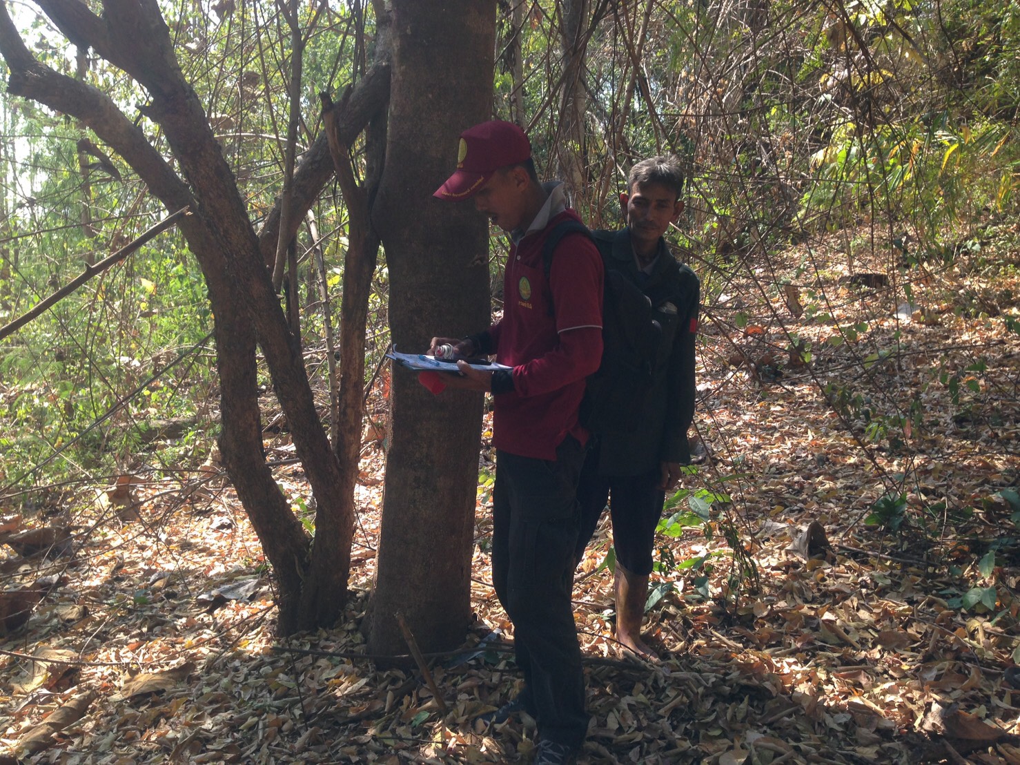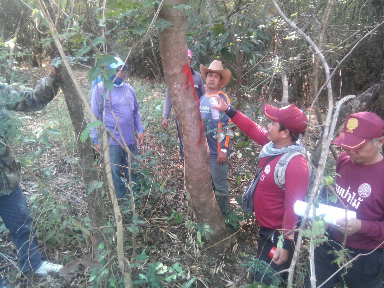 ชุดที่ ๒ ประสานผู้นำหมู่บ้านท่าเมี่ยง ม.๑๐ ต.นายม อ.เมืองเพชรบูรณ์ จ.เพชรบูรณ์ ในเขตป่าสงวนแห่งชาติป่าห้วยทินและป่าคลองตีบ รวมระยะทางประมาณ ๓ กม.