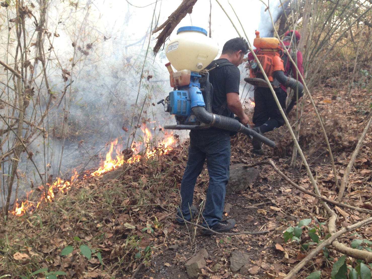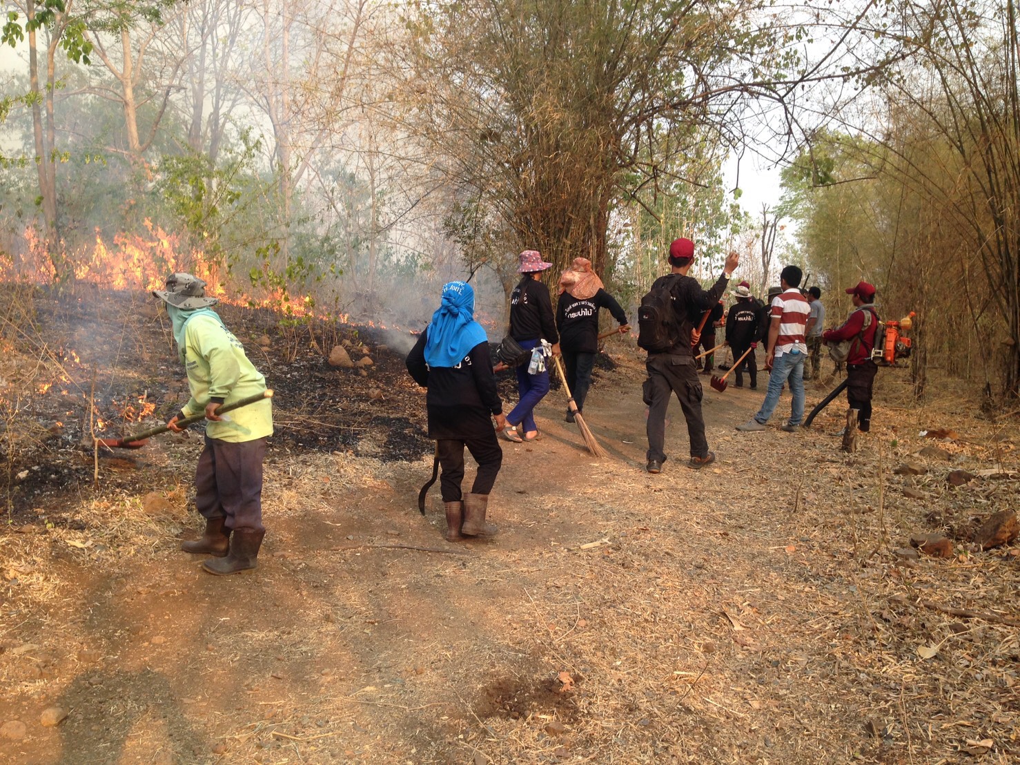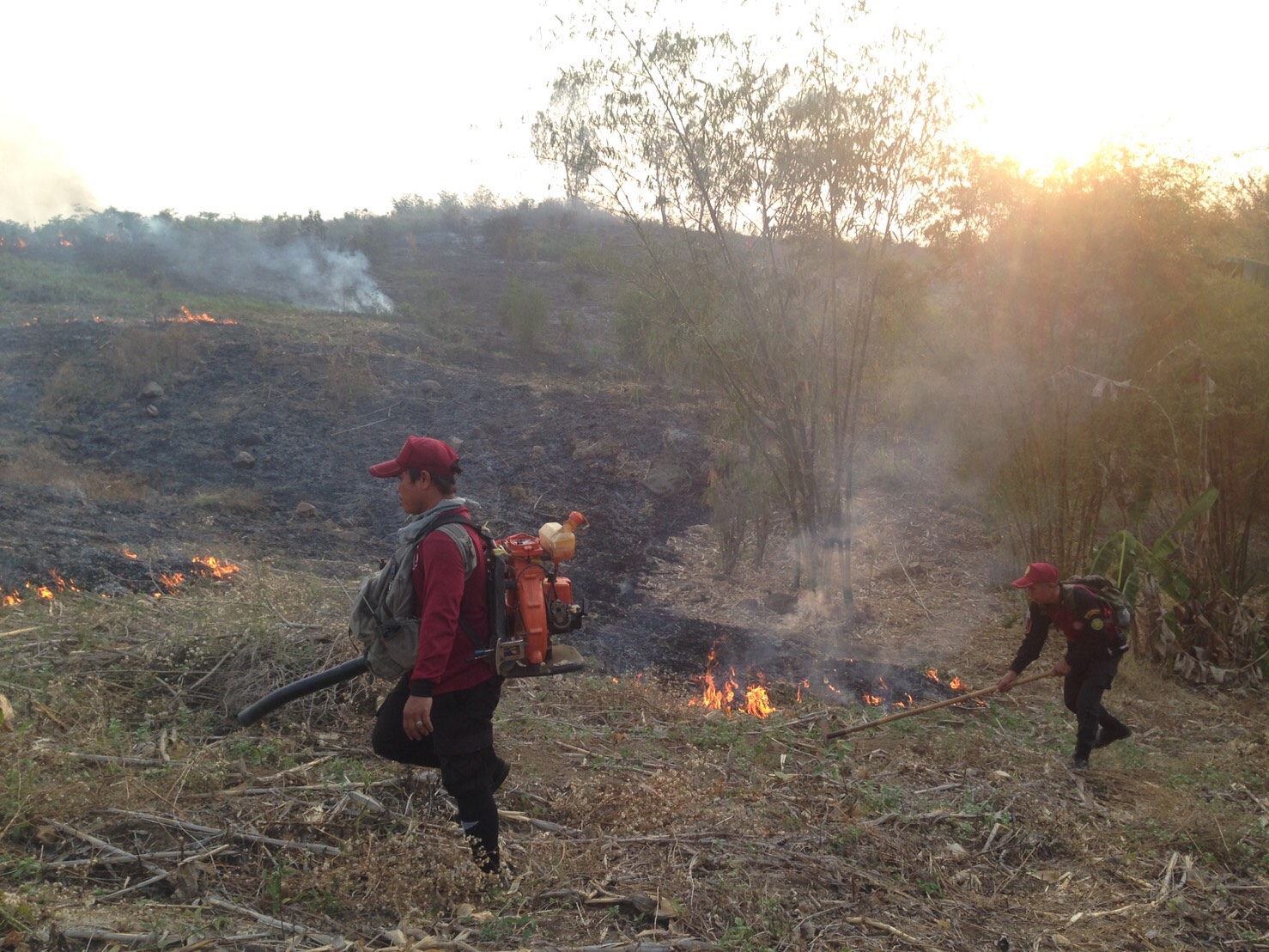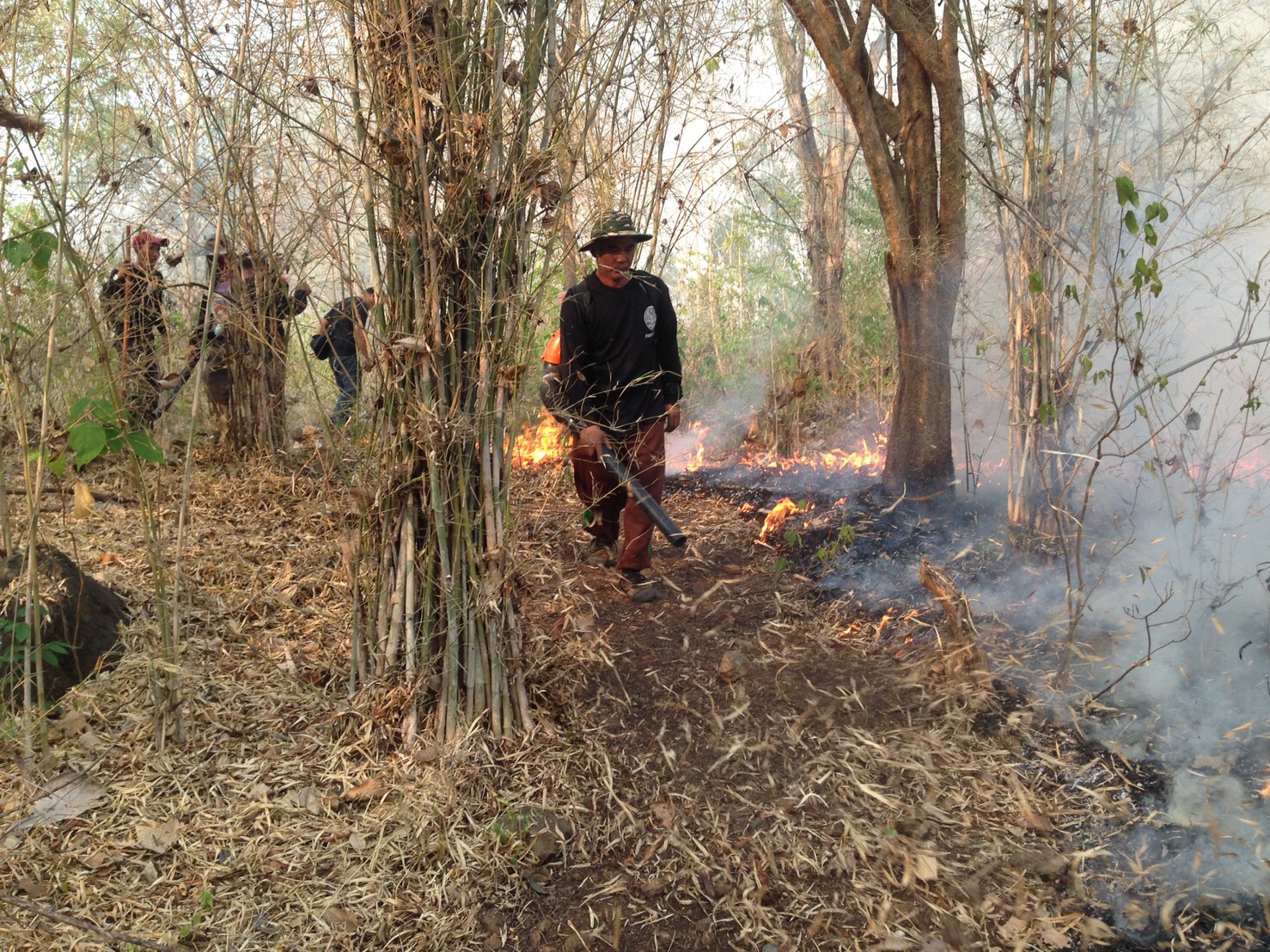 กิจกรรมที่ ๒ เวลา ๑๔.๕๘ น. ได้รับการประสานจากนายชิต อินทระนก ป่าไม้จังหวัดเพชรบูรณ์ ว่าได้รับแจ้งจากนายพรพิชัย ดิสโร ปลัดองค์การบริหารส่วนตำบลน้ำร้อน อ.เมืองเพชรบูรณ์ ว่าเกิดเหตุไฟไหม้ป่าในพื้นที่ป่าตามพระราชบัญญัติป่าไม้พุทธศักราช ๒๔๘๔ บริเวณป่าหลังโรงเรียนเพชรบูรณ์วิทยา ม.๕ ต.น้ำร้อน อ.เมืองเพชรบูรณ์ จ.เพชรบูรณ์ หน่วยฯ จึงแจ้งเครือข่ายฯบ้านซำบอน ม.๑๑ ต.น้ำร้อน (เครือข่ายฯปี ๒๕๖๐) ออกไปร่วมดับไฟกับ เจ้าหน้าที่ อบต.น้ำร้อน ที่พิกัด ๔๗ Q ๐๗๓๓๘๑๑ E UTM ๑๘๐๕๖๘๙ ส่วนหน่วยฯได้ส่งเจ้าหน้าที่ไปร่วมดับไฟและตรวจสอบพื้นที่เสียหาย หลังจากเสร็จจากการฝึกอบรมอาสาสมัครป้องกันไฟป่า ฯ อบต.วังศาล อ.วังโป่ง จ.เพชรบูรณ์ ใช้เวลาดับไฟ ๓๐ นาที จึงสามารถควบคุมไฟไว้ได้สภาพป่า เป็นสวนป่าสัก สลับป่าไผ่ และพื้นที่ที่ทำการเกษตร พื้นที่ป่าไม่ได้รับความเสียหายแต่อย่างใด เนื่องจากไฟไหม้เฉพาะเศษไม้ ใบไม้ ใบไผ่พื้นล่าง และพื้นที่ทำการเกษตร สาเหตุ น่าจะเกิดจากการแกล้งจุด และไม่พบผู้หนึ่งผู้ใดในที่เกิดเหตุ