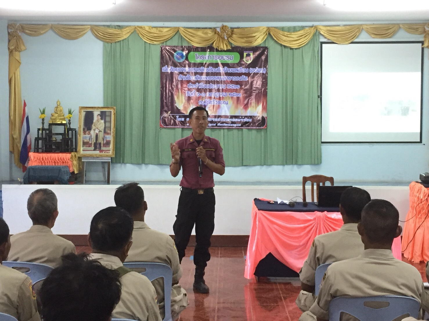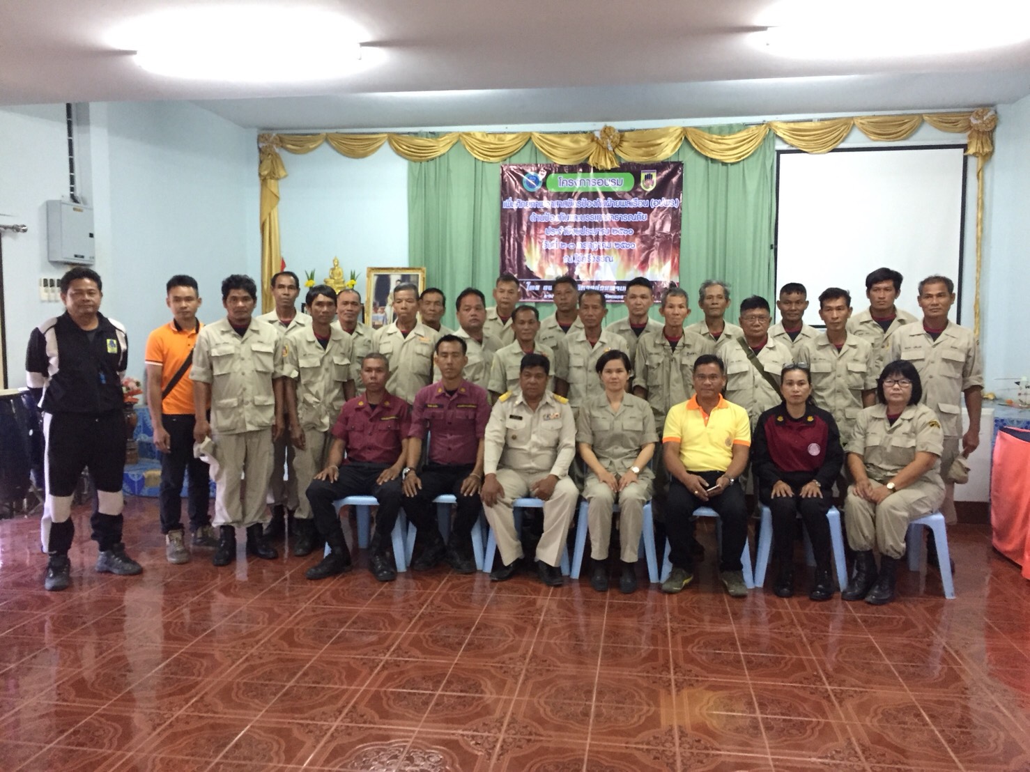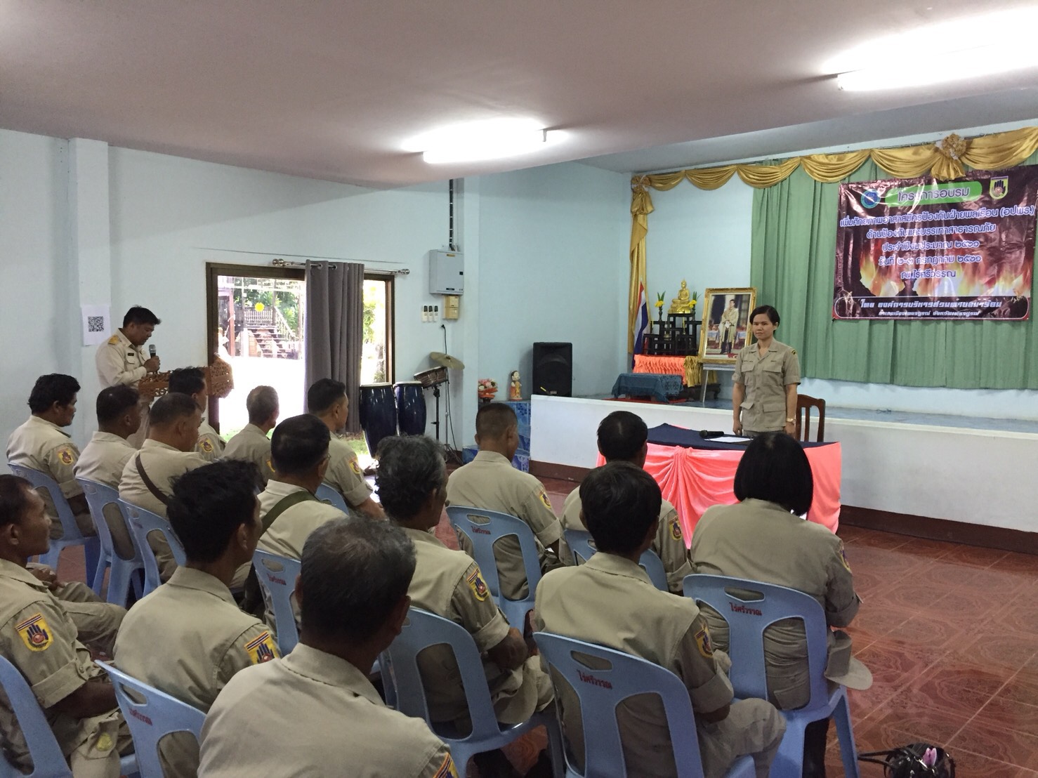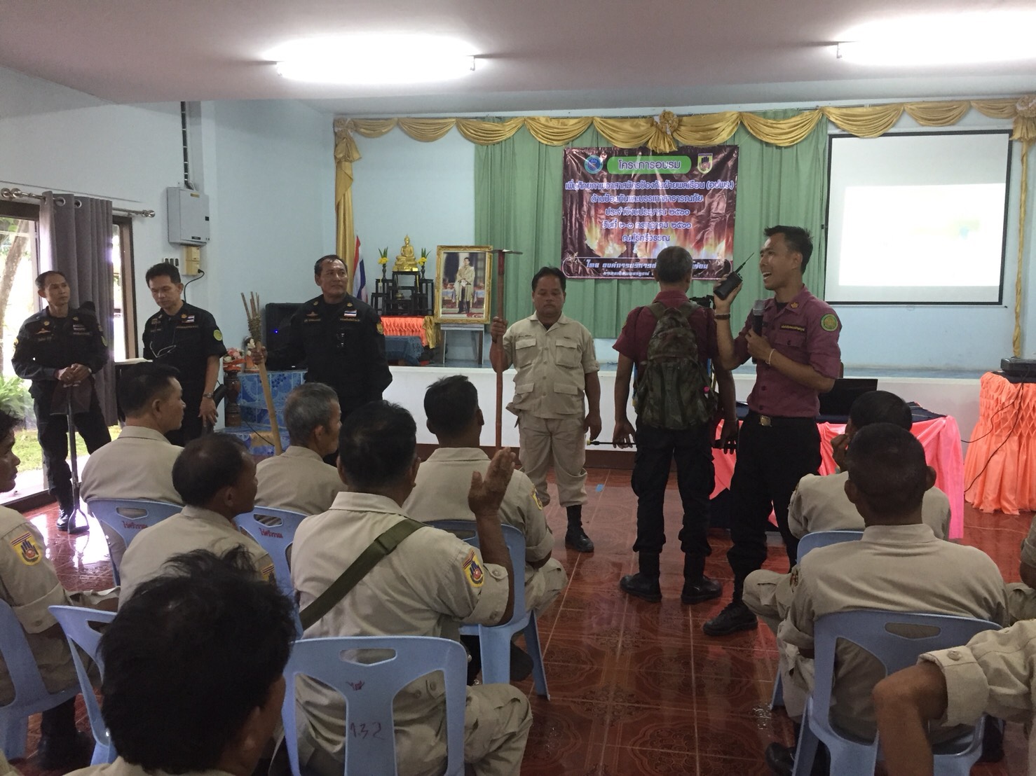 วันที่ ๒ ก.ค. ๖๑ หน่วยส่งเสริมการควบคุมไฟป่าเพชรบูรณ์ ร่วมกับเจ้าหน้าที่หน่วยป้องกันรักษาป่าที่ พช ๑๐( ตะเบาะ ) จัดนิทรรศการและแจกจ่ายเอกสาร แผ่นผับความรู้เกี่ยวกับ เรื่อง ไฟป่าเบื้องต้น จำนวน ๔๐ แผ่น, ร่วมพิธีเปิดโครงการฝึกอบรมเพิ่มศักยภาพอาสาสมัครป้องกันภัยฝ่ายพลเรือน ( อปพร.) ด้านป้องกันและบรรเทาสาธารณภัย ประจำปีงบประมาณ ๒๕๖๑ และได้รับเชิญให้เป็นวิทยากรบรรยายความรู้เรื่องไฟป่า ทั้งภาคทฤษฎีและภาคปฏิบัติ การใช้อุปกรณ์ดับไฟ วิธีและเทคนิคการควบคุมไฟป่า, การลดปริมาณเชื้อเพลิงโดยการใช้กล่องลดปริมาณเชื้อเพลิง และกฎหมายที่เกี่ยวข้องกับการควบคุมไฟป่า จัดโดยองค์การบริหารส่วนตำบลน้ำร้อน อ.เมืองเพชรบูรณ์ จ.เพชรบูรณ์ ณ ไร่ศรีวรรณโฮมสเตย์ ต.นายม อ.เมืองเพชรบูรณ์ จ.เพชรบูรณ์ โดยมีนางสาวนนทวรรณ จงจิตร นายกองค์การบริหารส่วนตำบลน้ำร้อน เป็นประธานในพิธีเปิด มีผู้เข้าร่วมฝึกอบรมฯ จำนวน ๔๐ คน
