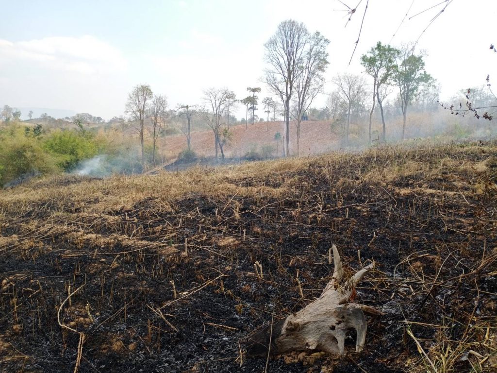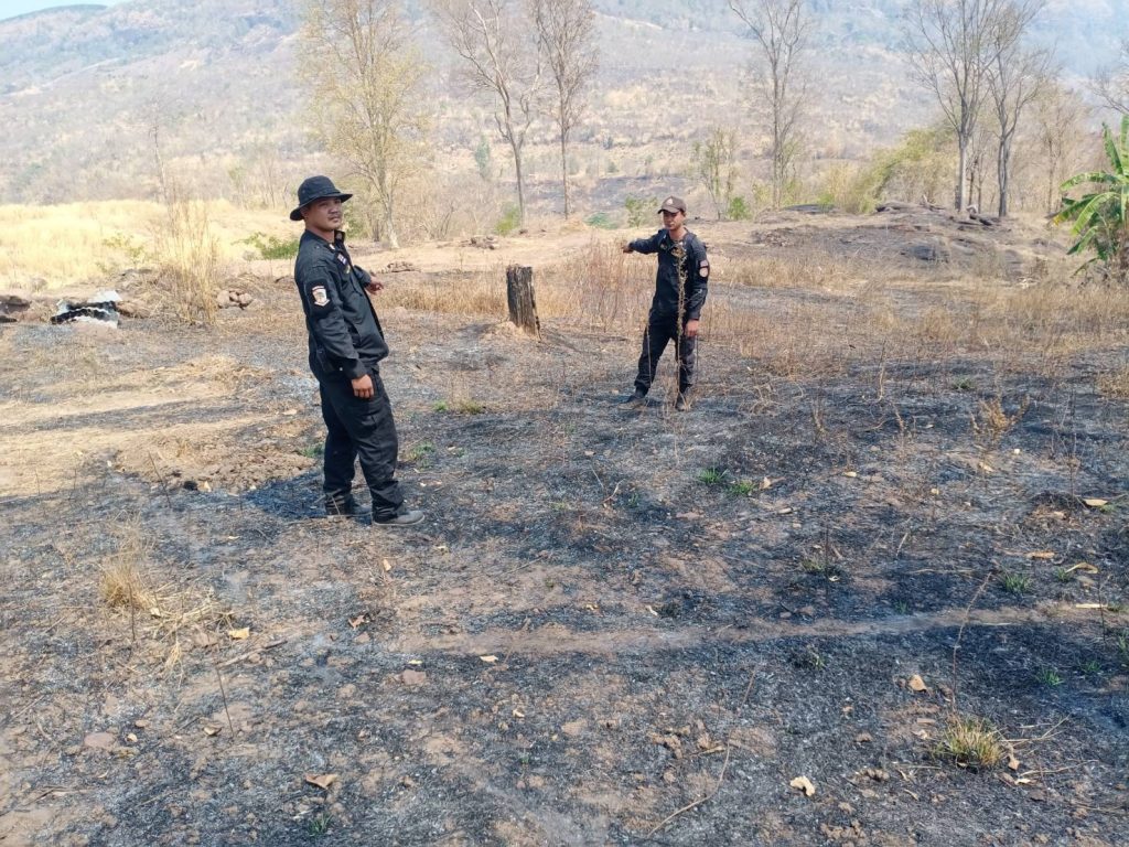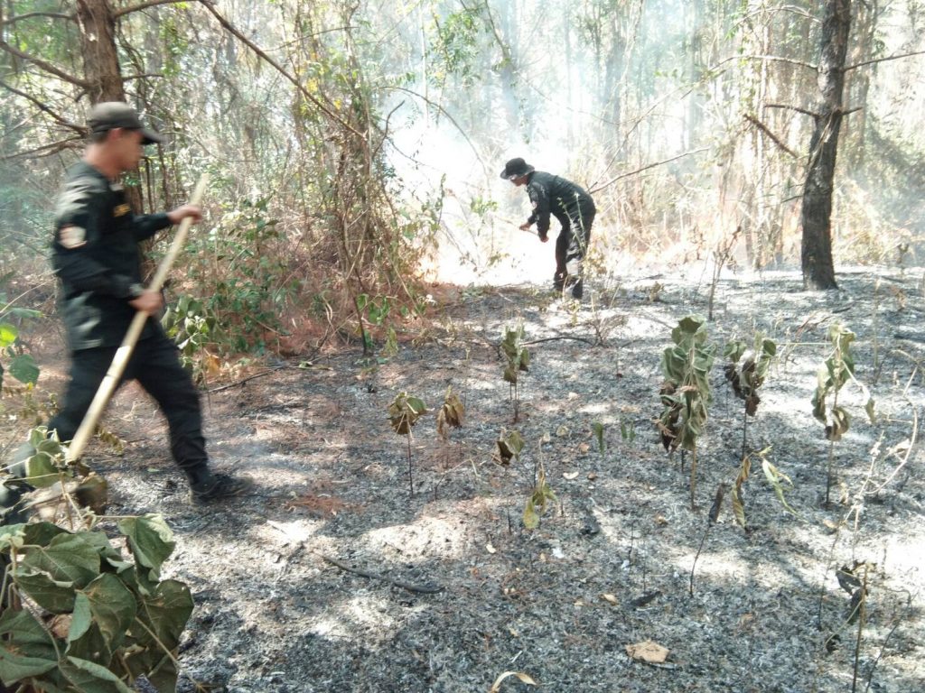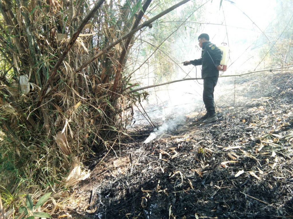 ในบางจุดพบว่าไฟได้ดับไปแล้วพร้อมทั้งได้ร่วมกันดำเนินการควบคุม และดับไฟป่าจนแล้วเสร็จ เวลา 17.00 น. พื้นที่เสียหายรวมประมาณ 20 ไร่ และจากการตรวจสอบและได้สอบถามผู้นำชุมชนสาเหตุการเกิดไฟป่ามาจากการจุดไฟเก็บหาของป่าและเตรียมพื้นที่ทำการเกษตร
