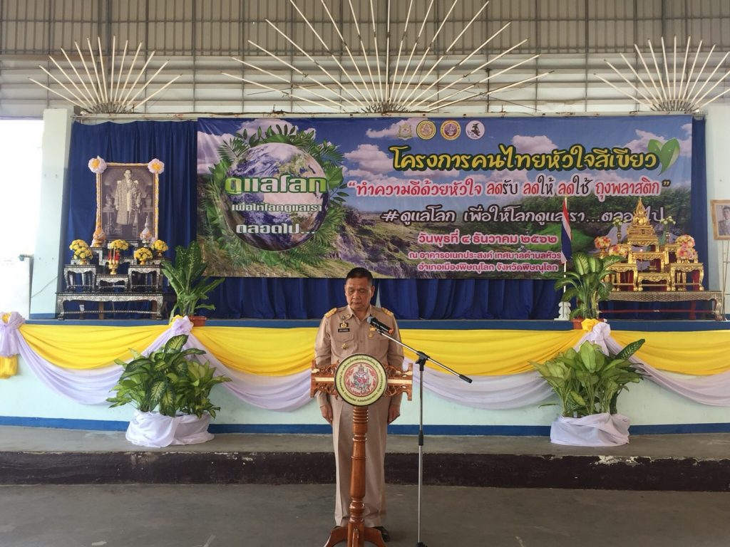 วันที่ 4 ธันวาคม 2562 เวลา 13.00-15.00 น. นายบัณฑิต วงศ์เสนานุรักษ์ หัวหน้าศูนย์การเรียนรู้ด้านทรัพยากรธรรมชาติและสิ่งแวดล้อม จ.พิษณุโลก พร้อมเจ้าหน้าที่และนักศึกษาฝึกงาน ได้ไปร่วมโครงการคนไทยหัวใจสีเขียว ภายใต้แนวคิด” ทำความดีด้วยหัวใจ ลดรับ ลดให้ ลดใช้ถุงพลาสติก” ดูแลโลก เพื่อให้โลกดูแลเรา ตลอดไป ณ อาคารอเนกประสงค์เทศบาลตำบลหัวรอ อ.เมืองพิษณุโลก จ.พิษณุโลก โดยมีนายชัชพงศ์ เอมะสุวรรณ รอง ผวจ.พิษณุโลก เป็นประธานในพิธี นายมนต์ชัย วิวัฒนธนาฒน์ นายก อบจ.พิษณุโลก กล่าวรายงาน ในการนี้ ศูนย์ฯ ได้จัดนิทรรศการ จัดป้ายรณรงค์ ลด ละ เลิก ถุงพลาสติกและโฟม แจกถุงผ้า นำกล้าไม้ 3 อย่าง ประโยชน์ 4 อย่าง จำนวน 500 ต้น ไปแจกจ่ายแก่หน่วยงานฯ และผู้ร่วมงาน