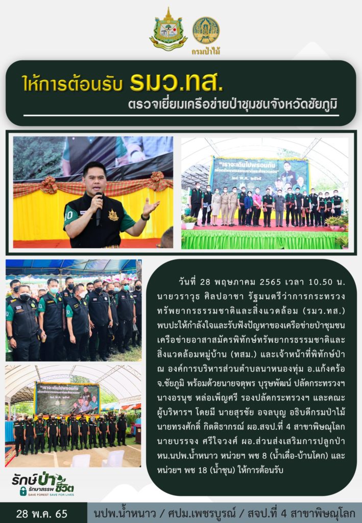 ให้การต้อนรับ รมว.ทส ตรวจเยี่ยมเครือข่ายป่าชุมชนจังหวัดชัยภูมิ