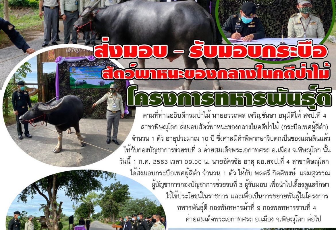 ส่งมอบ-รับมอบกระบือ สัตว์พาหนะของกลางในคดีป่าไม้ โครงการทหารพันธุ์ดี