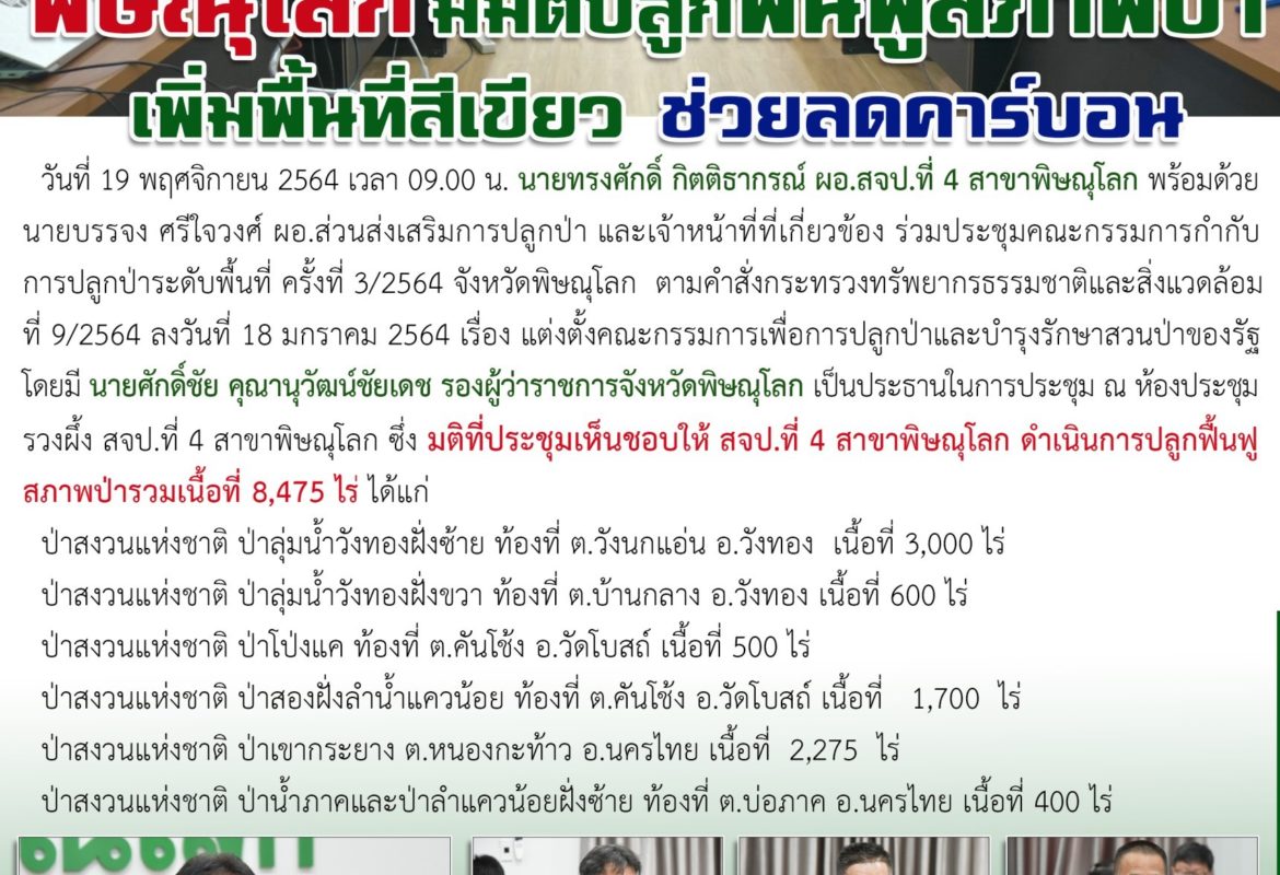 พิษณุโลก มีมติปลูกฟื้นฟูสภาพป่าเพิ่มพื้นที่สีเขียว ช่วยลดคาร์บอน
