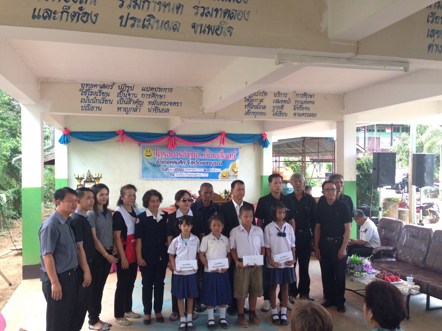 วันที่ 20 เมษายน 2560 เวลา 11.30 -15.30 น. เจ้าหน้าที่ชุดปฏิบัติงานที่มีนายบัณฑิต วงศ์เสนานุรักษ์ ทำหน้าที่หัวหน้าฝ่ายปลูกป่า ส่วนส่งเสริมการปลูกป่า สจป.ที่ 4 สาขาพิษณุโลก หัวหน้าชุดปฏิบัติงานฯ พื้นที่ จ.เพชรบูรณ์ ได้ไปร่วมงานโครงการอำเภอยิ้ม เคลื่อนที่ ของ อ.หล่มสัก จ.เพชรบูรณ์ ณ โรงเรียนบ้านดอนสว่าง ม.9 ต.สักหลง อ.หล่มสัก โดยมีนายชนก มากพันธ์ุ นายอำเภอหล่มสัก เป็นประธานในพิธี นายทองอินทร์ คุณประเสริฐ นายก อบต.สักหลง กล่าวรายงาน ในการนี้เจ้าหน้าที่ชุดปฏิบัติงานได้ดำเนินการดังนี้