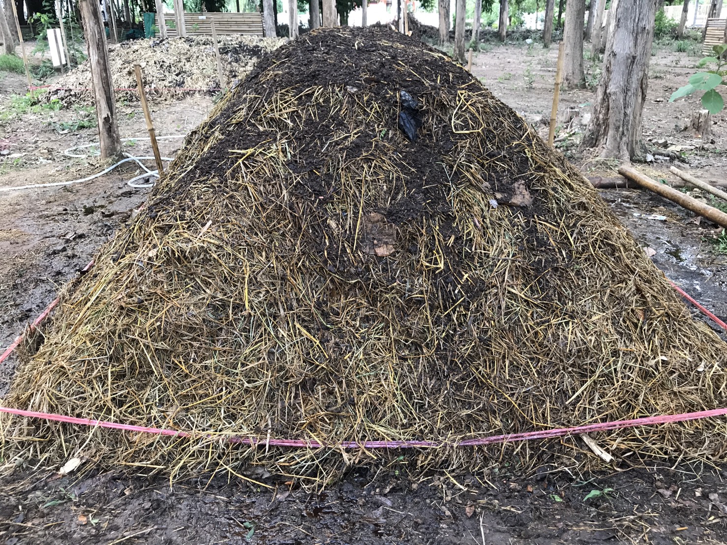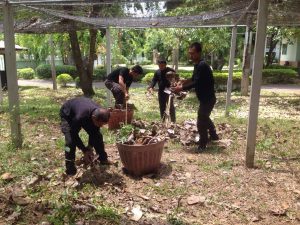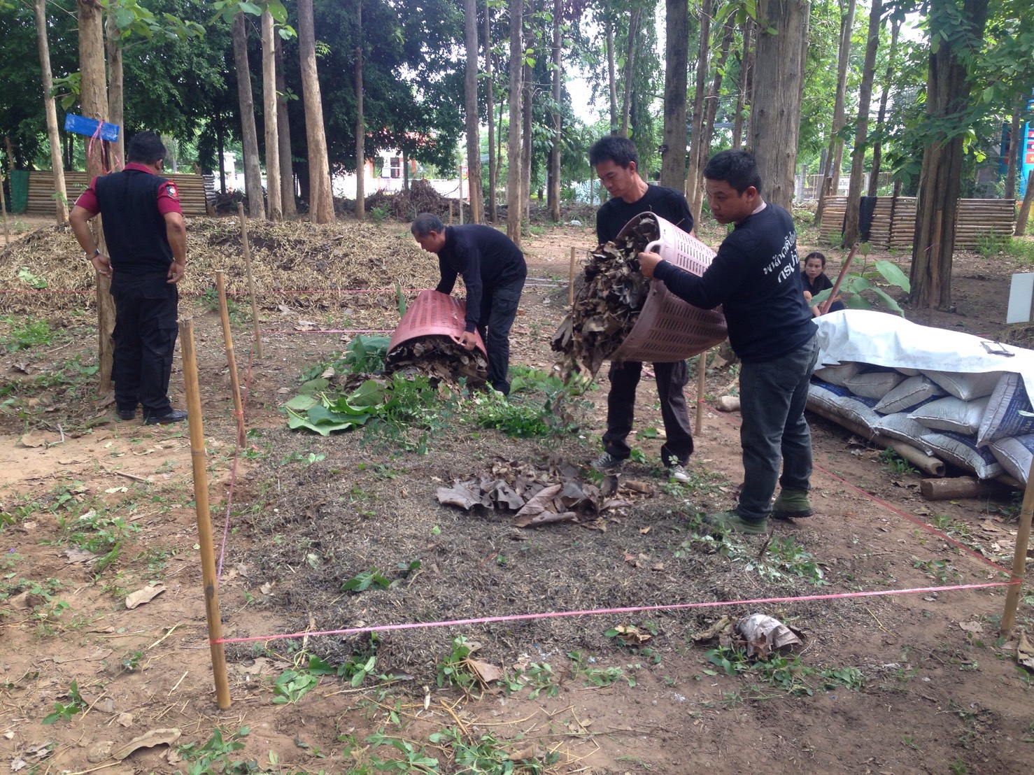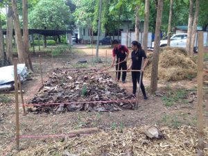 ๒. ช่วยกันทำปุ๋ยหมักตามสูตร วิศวกรรมแม่โจ้ ๑ ธนาคารกิ่งไม้ใบไม้หน่วยฯ จำนวน ๑ กอง ขนาดฐานกว้าง ๒.๕๐ เมตร ยาว ๕ เมตร สูง ๑.๕๐ เมตร โดยใช้ใบไม้ จำนวน ๒๕๐ กก. ฟางข้าว จำนวน ๓๑๐ กก. และเปลือกถั่วเขียว จำนวน ๑๒๐ กก