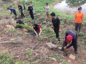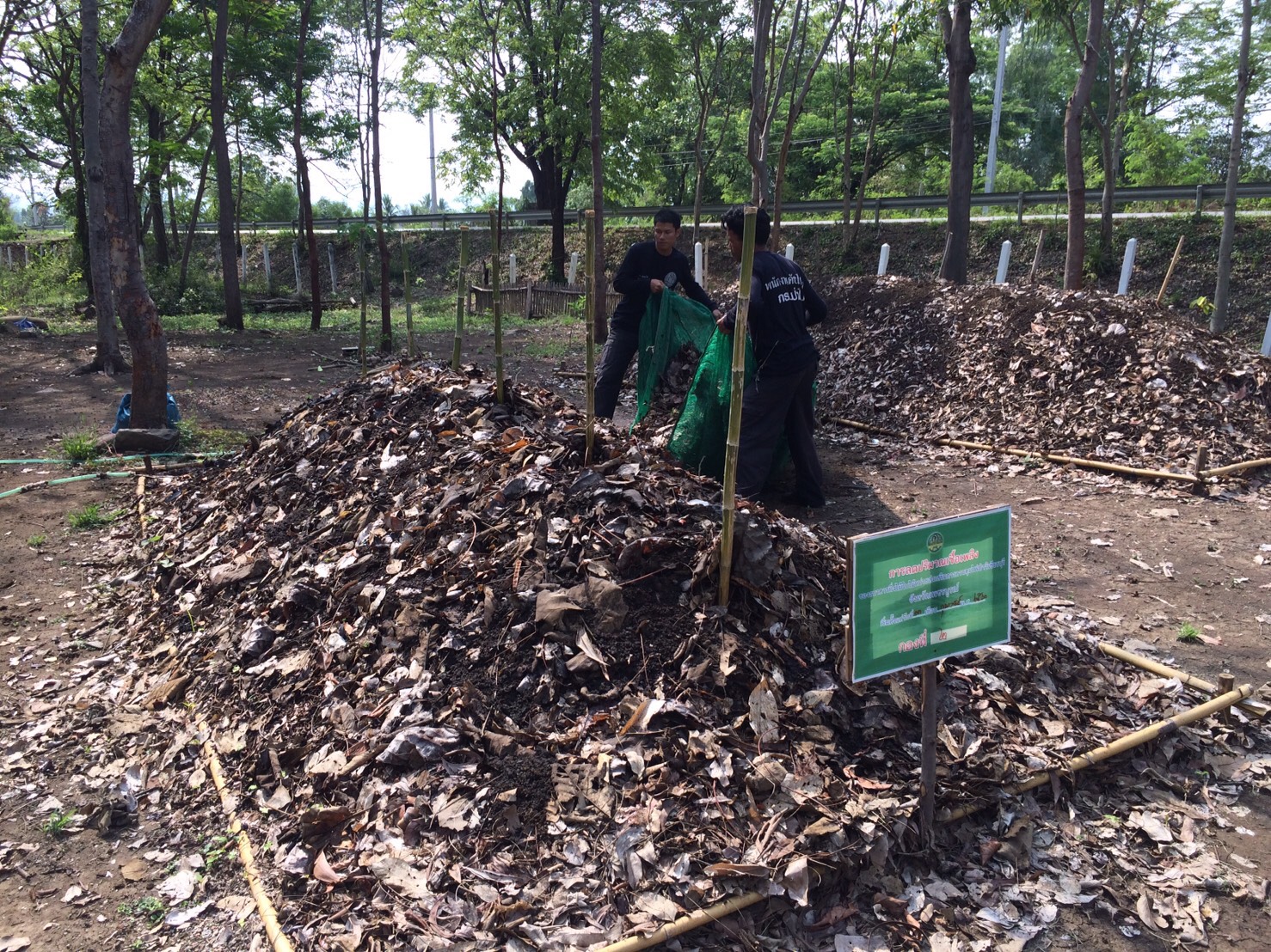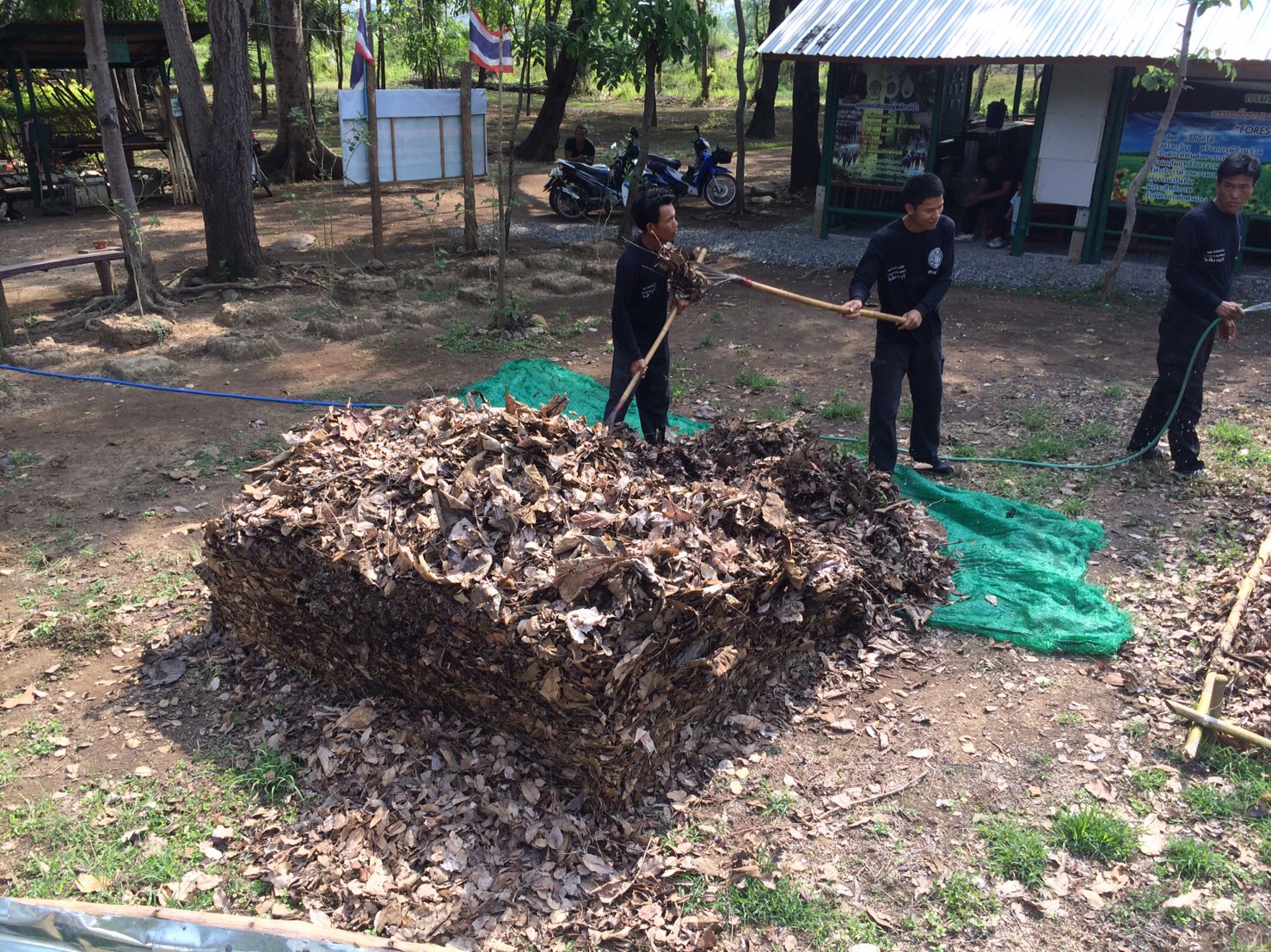 ๒. ช่วยกันทำปุ๋ยหมักตามสูตร วิศวกรรมแม่โจ้ ๑ ของธนาคารกิ่งไม้ใบไม้หน่วยฯ กองที่ ๓ ขนาดฐานกว้าง ๒.๕๐ เมตร ยาว ๕ เมตร วันนนี้ทำได้ขนาดความสูง ๑ เมตร โดยใช้ใบไม้ จำนวน ๒๕๐ กก. และจำทำต่อให้ได้ความสูง ๑.๕๐ เมตร ในวันต่อไป