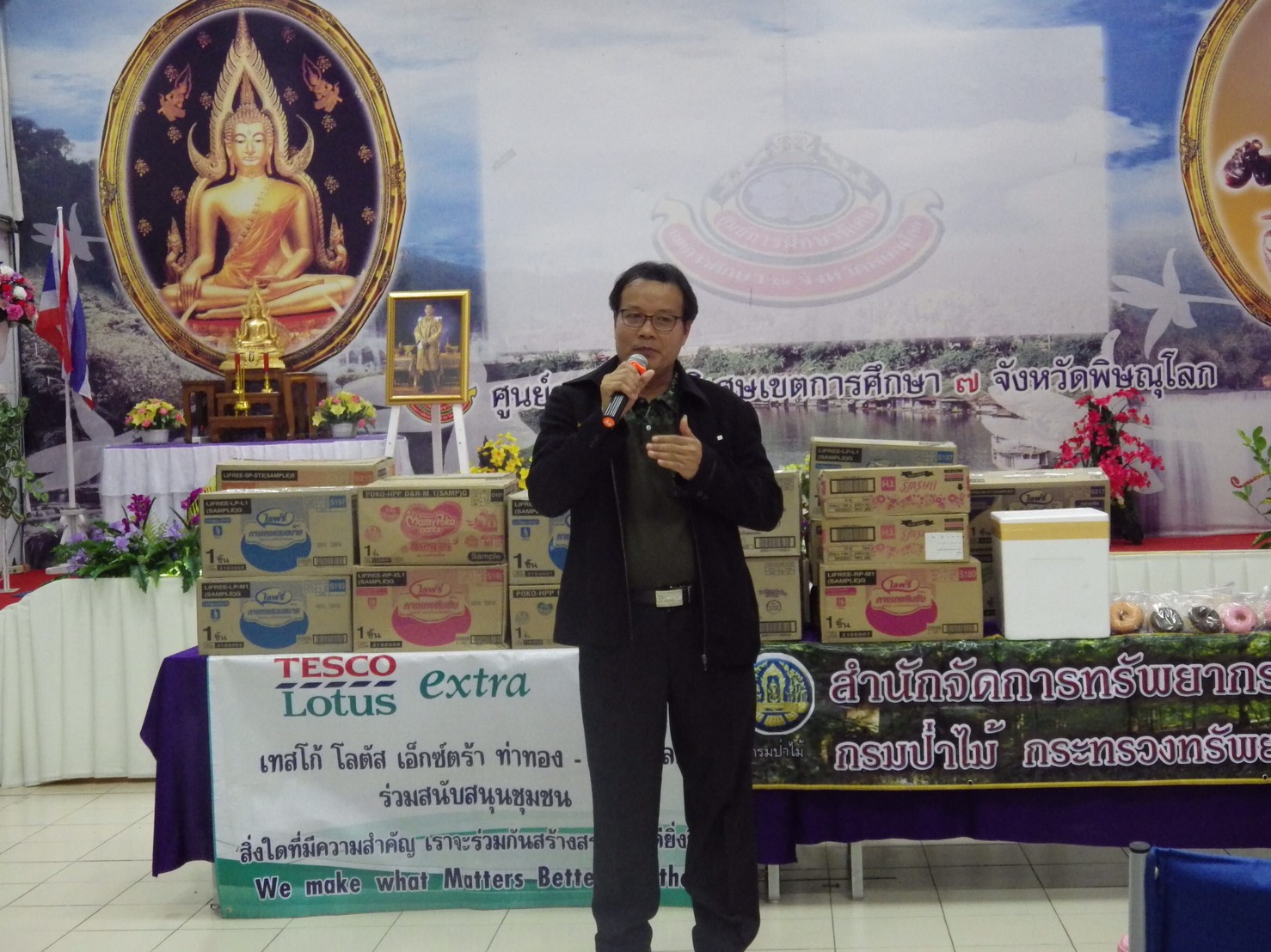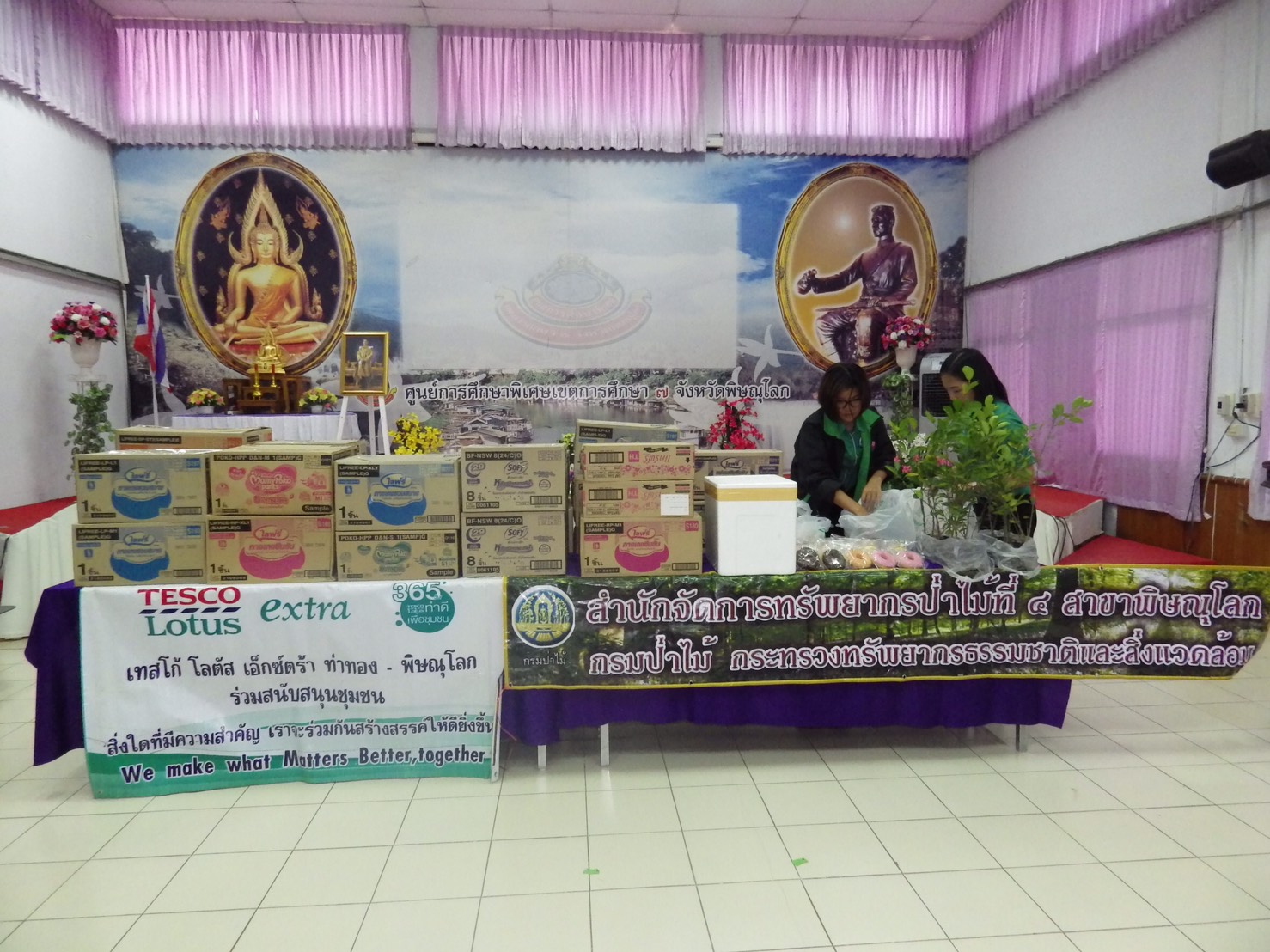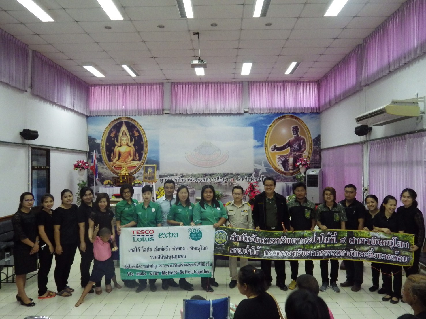 วันที่ 30 พฤษภาคม 2560 เวลา 12.00 น. นายบัณฑิต วงศ์เสนานุรักษ์ ผอ.ส่วนโครงการพระราชดำริและกิจการพิเศษ และทำหน้าที่หัวหน้าศูนย์การเรียนรู้ด้านทรัพยากรธรรมชาติและสิ่งแวดล้อม จ.พิษณุโลก สจป.ที่ 4 สาขาพิษณุโลก พร้อมด้วยเจ้าหน้าที่ ร่วมกับนายคเณชา จารุขันธ์ รอง.ผอ.เทสโก้ โลตัส เอ็กซ์ตร้า พิษณุโลก (ฝ่ายพื้นที่เช่า) และเจ้าหน้าที่ ได้ไปมอบสิ่งของเครื่องใช้ให้แก่ ศูนย์การศึกษาพิเศษ เขตการศึกษา 7 จ.พิษณุโลก ต.ท่าทอง อ.เมืองพิษณุโลก จ.พิษณุโลก มีรอง ผอ.ศูนย์ฯ พร้อมเจ้าหน้าที่รับมอบ ในการนี้ เทสโก้ โลตัส เอ็กซ์ตร้า พิษณุโลก ได้มอบสิ่งของคิดเป็นเงิน 10,000.- บาท ส่วนโครงการพระราชดำริฯ มอบขนม ไอศกรีม ต้นไม้ปลูกป่า 3 อย่าง ประโยชน์ 4 อย่าง คิดเป็นเงิน 2,000.- บาท ให้แก่เด็กพิเศษ (เด็กบกพร่องทางการเรียนรู้และเด็กพิการ) ตลอดจนผู้ปกครอง เจ้าหน้าที่ ที่มาร่วมรับมอบในครั้งนี้ จำนวน 98 คน