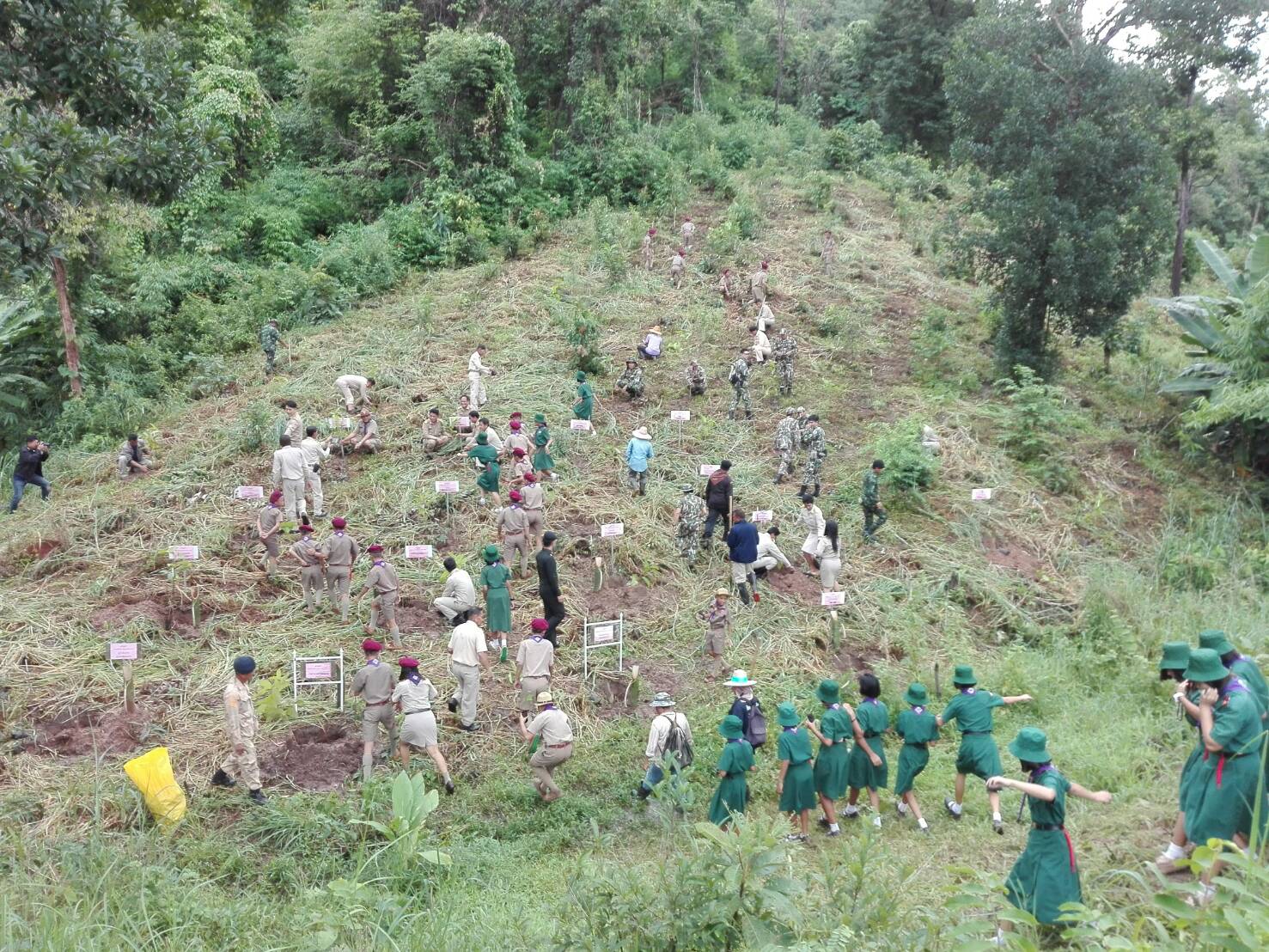 วันที่ 27 กรกฎาคม 2560. เวลา. 09.00 น. หน่วยฯ พล.4 (ป่าแดง) หน่วยฯ พล.3(หนองกระท้าว) หน่วยฯ พล.12(แก่งบัวคำ) หน่วยฯพล.14(น้ำคลาด) ร่วมกับ อำเภอชาติตระการ เขตรักษาพันธ์ุสัตว์ป่าภูเมี่ยง-ภูทอง กองทัพภาคที่ 3 กองพันทหารช่างที่ 302 สถานีตำรวจภูธรชาติตระการ กองร้อยตำรวจตระเวนชายแดนที่ 315 องค์การปกครองส่วนท้องถิ่น นักเรียน นักศึกษาและประชาชนในพื้นที่ ร่วมกันปลูกป่า. ” โครงการรวมใจปลูกป่า เพื่อเฉลิมพระเกียรติสมเด็จพระเจ้าอยู่หัวมหาวชิราลงกรณ บดินทรเทพยวรางกูร เนื่องในโอกาส วันเฉลิมพระชนมพรรษา 65 พรรษา 28 กรกฎาคม 2560 ในเขตป่าสงวนแห่งชาติป่าน้ำภาคน้อย ท้องที่บ้านนาเปอะ หมู่ที่ 2 ตำบลชาติตระการ อำเภอชาติตระการ เนื้อที่จำนวน 15-2-80 ไร่ โดยมีนายพยุง. คุ้มสุพรรณ นายอำเภอชาติตระการ เป็นประธานในพิธี