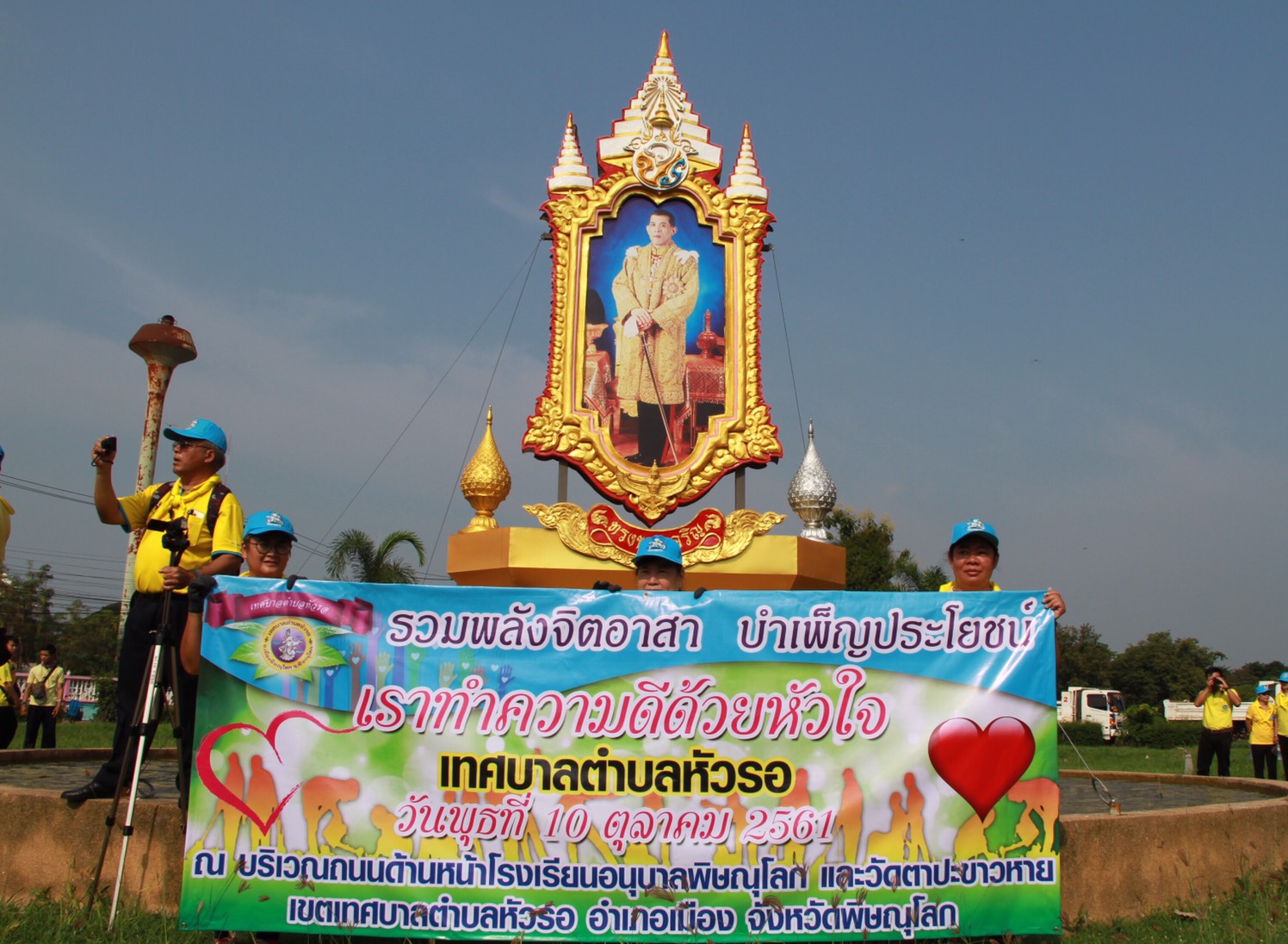 วันที่ 10 ตุลาคม 2561 สจป.ที่ 4 สาขาพิษณุโลก โดยนายเจน ทาฟอง ผอ.ส่วนอำนวยการพร้อมเจ้าหน้าที่ ร่วมโครงการจิตอาสา”ทำความดี ด้วยหัวใจ”ร่วมแสดงความจงรักภักดีและรำลึกในพระมหากรุณาธิคุณพระบาทสมเด็จพระปรมินทรมหาภูมิพลอดุลยเดช บรมนาถบพิตร ประจำปีงบประมาณ พ.ศ. 2561 ณ บริเวณถนนด้านหน้าโรงเรียนอนุบาลพิษณุโลกและวัดตาปะขาวหาย เขตเทศบาลตำบลหัวรอ อ.เมือง จ.พิษณุโลก