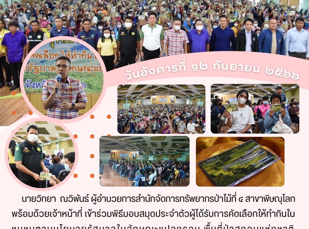 พิธีมอบสมุดประจำตัวผู้ได้รับการคัดเลือกให้ทำกินในชุมชนตามนโยบายรัฐบาลในลักษณะแปลงรวม