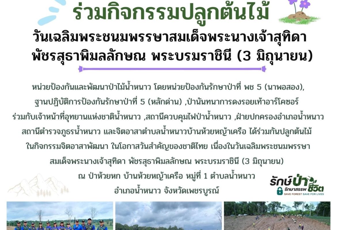 ร่วมกิจกรรมปลูกต้นไม้ วันเฉลิมพระชนมพรรษาสมเด็จพระนางเจ้าสุทิดา พัชรสุธาพิมลลักษณ พระบรมราชินี (3 มิถุนายน)