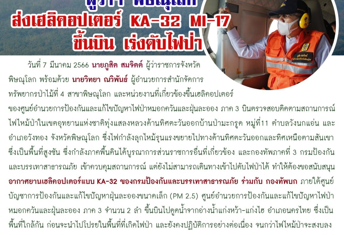 ผู้ว่าฯ พิษณุโลก ส่งเฮลิคอปเตอร์ KA-32 MI-17 ขึ้นบิน เร่งดับไฟป่า
