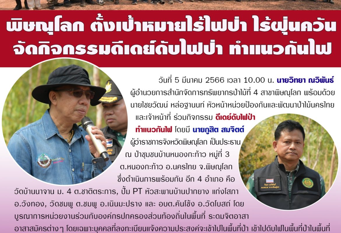 พิษณุโลก ตั้งเป้าหมายไร้ไฟป่า ไร้ฝุ่นควันจัดกิจกรรมดีเดย์ดับไฟป่า ทำแนวกันไฟ