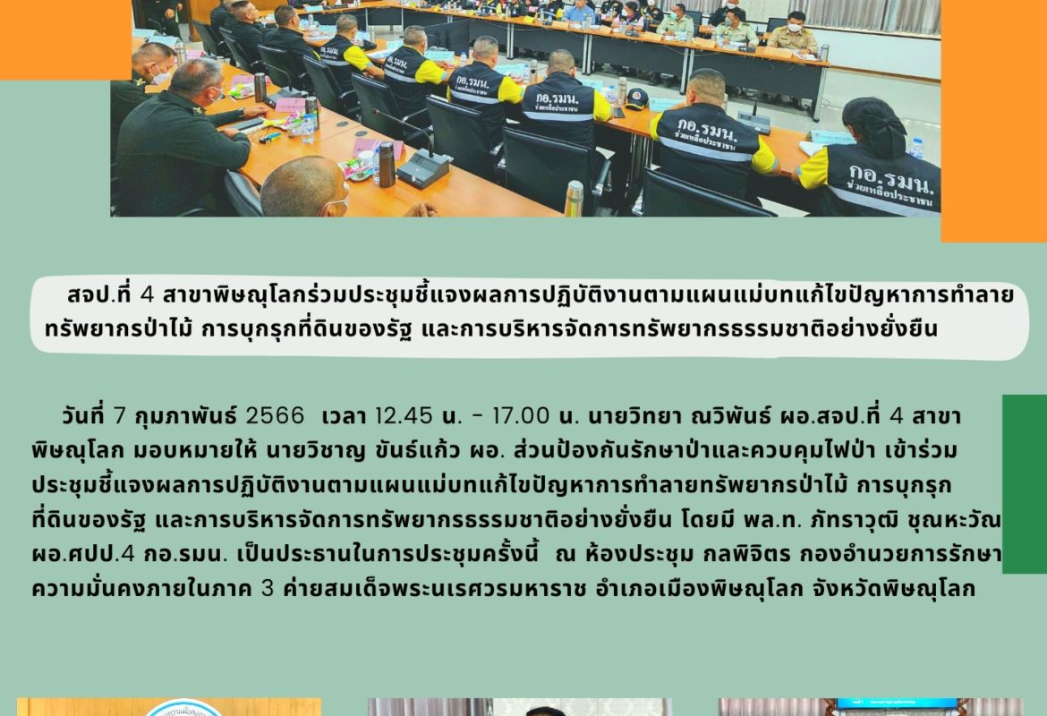 ประชุมชี้แจงผลการปฏิบัติงานตามแผนแม่บทแก้ไขปัญหาการทำลายทรัพยากรป่าไม้ การบุกรุกที่ดินของรัฐ และการบริหารจัดการทรัพยากรธรรมชาติอย่างยั่งยืน