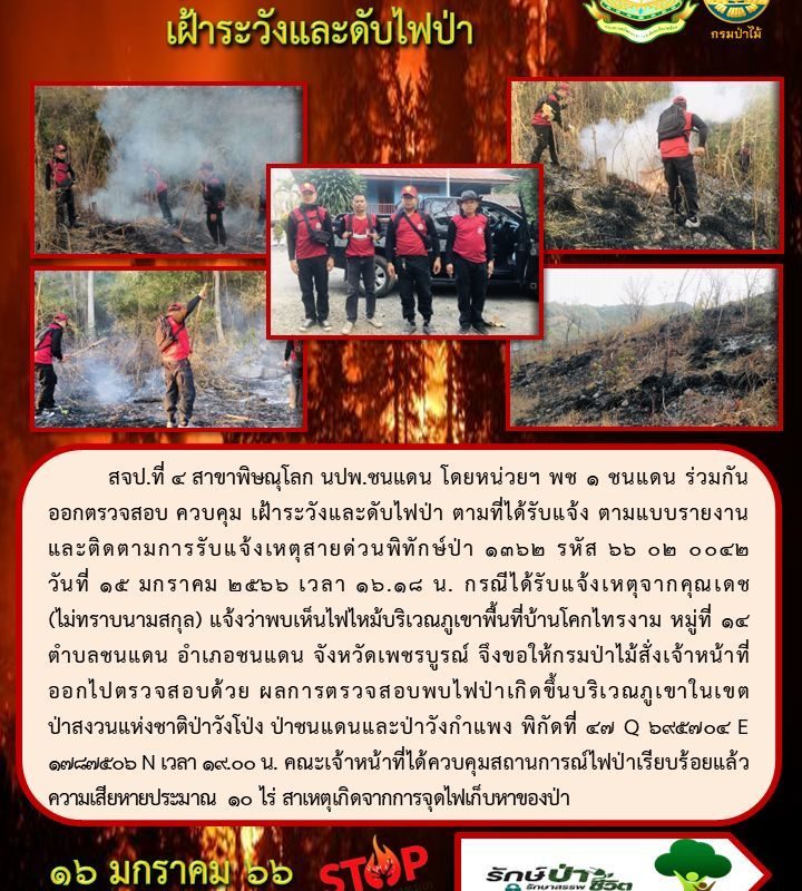 รับแจ้งเหตุ สายด่วนพิทักษ์ป่า 1362 เฝ้าระวังและดับไฟป่า
