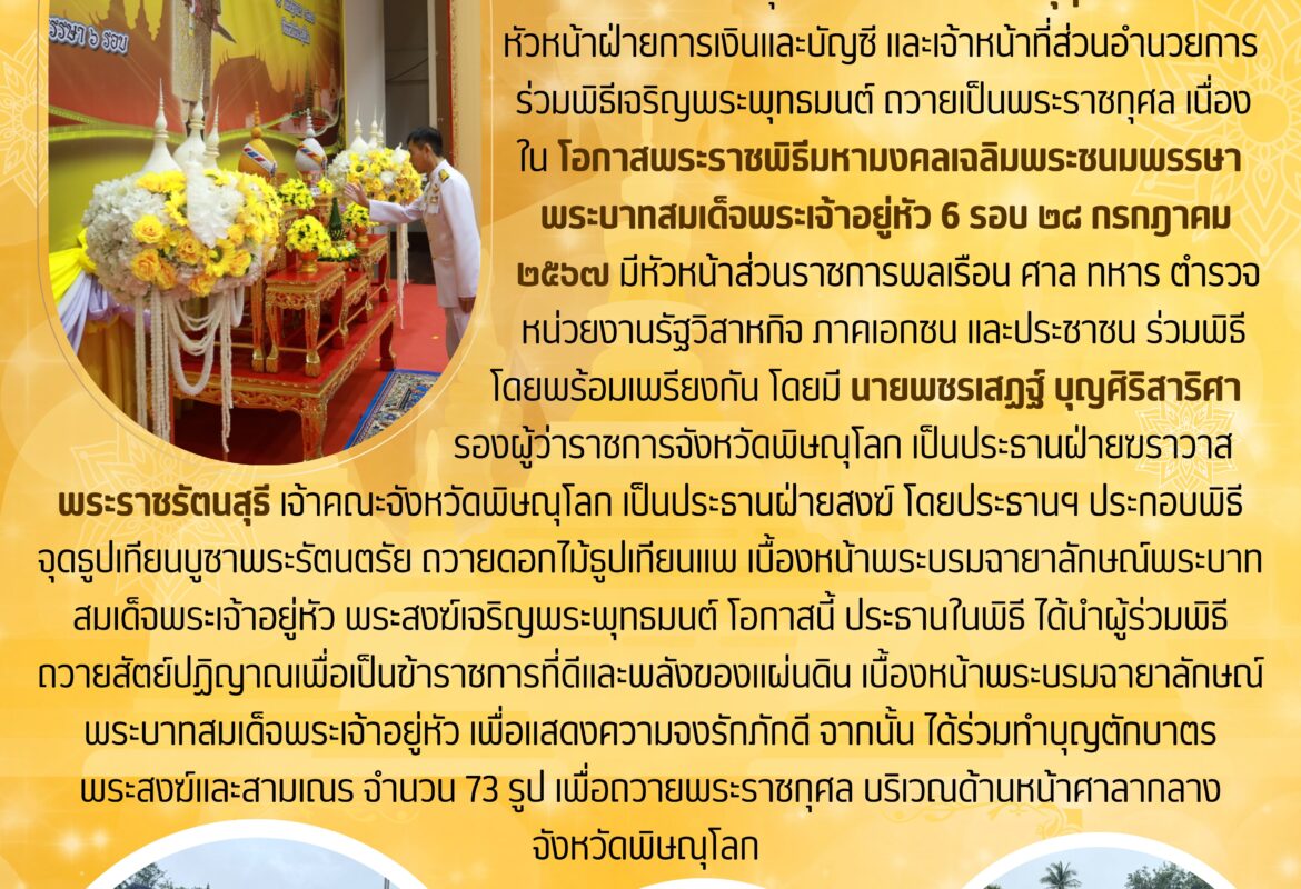พิธีทำบุญตักบาตรถวายพระราชกุศล เนื่องในโอกาสพระราชพิธีเฉลิมพระชนมพรรษา 6 รอบ 28 กรกฎาคม 2567