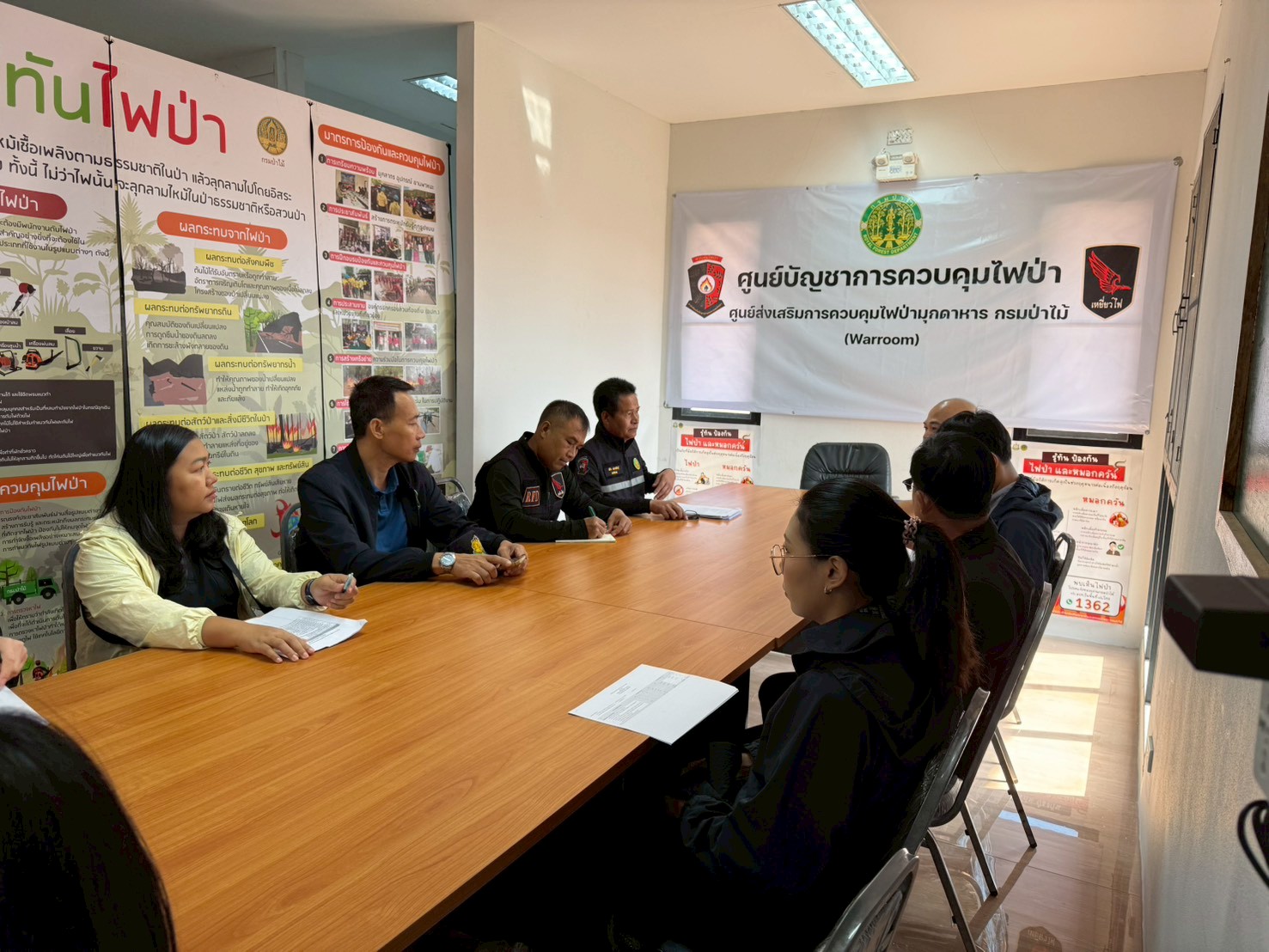 วันพุธที่ 11 มีนาคม 2569 สำนักแผนงานและสารสนเทศ โดยนายพินิจศักดิ์ กลิ่นมาลา ผู้อำนวยการส่วนติดตามและประเมินผล พร้อมคณะเจ้าหน้าที่ ลงพื้นที่ติดตามความก้าวหน้ากิจกรรมป้องกันไฟป่าและควบคุมหมอกควัน ณ ศูนย์ส่งเสริมการควบคุมไฟป่ามุกดาหาร บ้านโคกสำราญ ตำบลคำอาฮวน อำเภอเมือง จังหวัดมุกดาหาร และป่าสงวนแห่งชาติป่าดงหมู บ้านนาคำน้อย ตำบลคำป่าหลาย อำเภอเมือง จังหวัดมุกดาหาร โดยมีนายพิชัย วงษ์กาฬสินธุ์ ผู้อำนวยการศูนย์ส่งเสริมการควบคุมไฟป่ามุกดาหาร พร้อมเจ้าหน้าที่จากสำนักจัดการทรัพยากรป่าไม้ที่ 7 (ขอนแก่น) ร่วมให้ข้อมูลและนำลงพื้นที่
