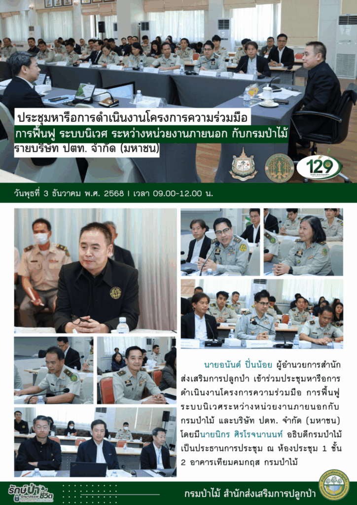 วันที่ 3 ธันวาคม 2568 ประชุมหารือการดำเนินงานโครงการความร่วมมือการฟื้นฟู ระบบนิเวศ ระหว่างหน่วยงานภายนอก กับกรมป่าไม้ รายบริษัท ปตท. จำกัด (มหาชน) Leave a comment Post Views: 7