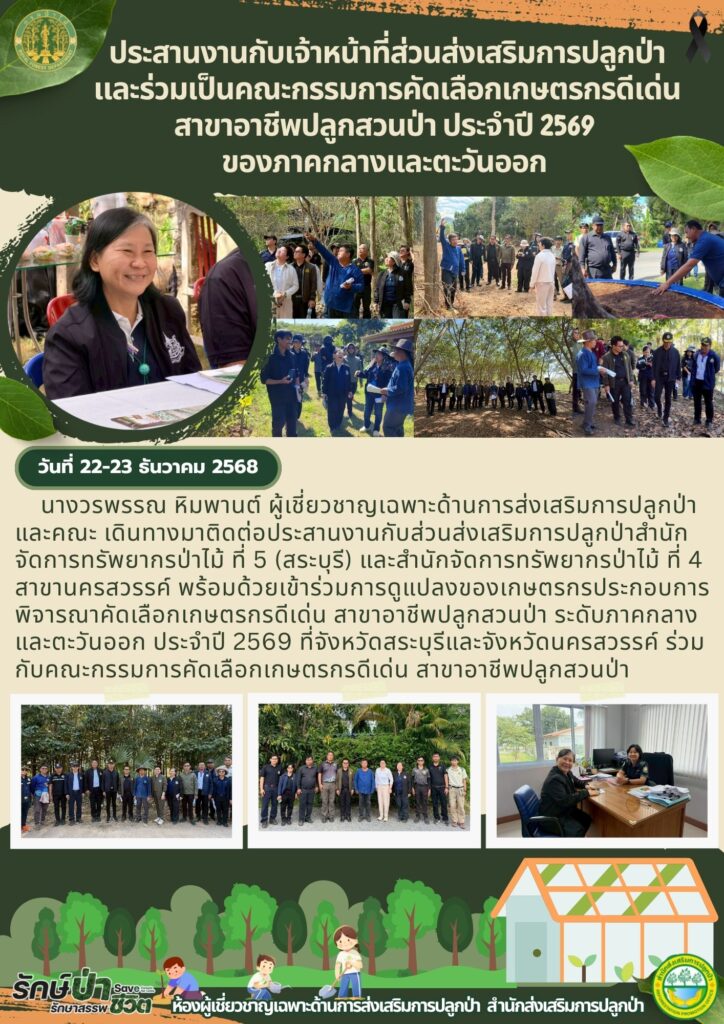 วันที่ 21-23 ธันวาคม 2568 ประสานงานกับเจ้าหน้าที่ส่วนส่งเสริมการปลูกป่าและร่วมเป็นคณะกรรมการคัดเลือกเกษตรกรดีเด่น สาขาอาชีพปลูกสวนป่า ประจำปี 2569 ของภาคกลางและตะวันออก Leave a comment