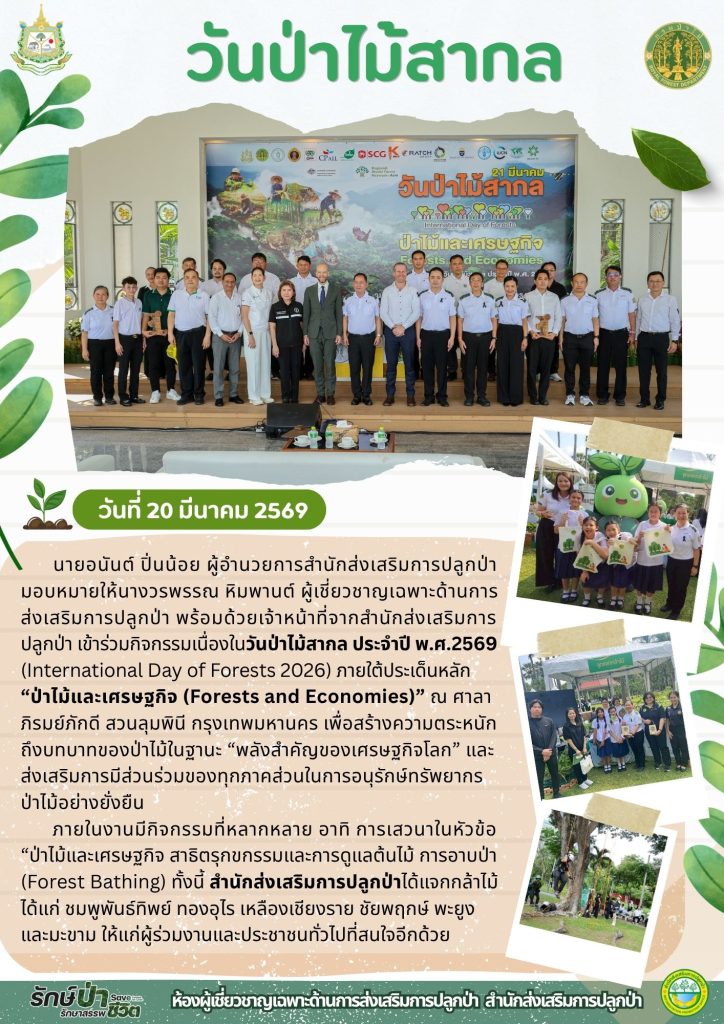 วันที่ 20 มีนาคม 2569 เข้าร่วมกิจกรรมเนื่องในวันป่าไม้สากล ประจำปี พ.ศ.2569 (International Day of Forests 2026) ณ ศาลาภิรมย์ภักดี สวนลุมพินี กรุงเทพมหานคร Leave a comment