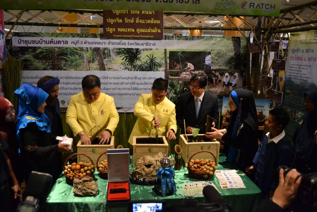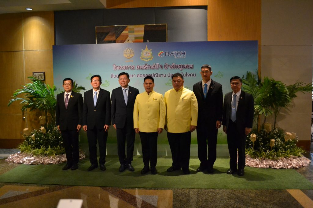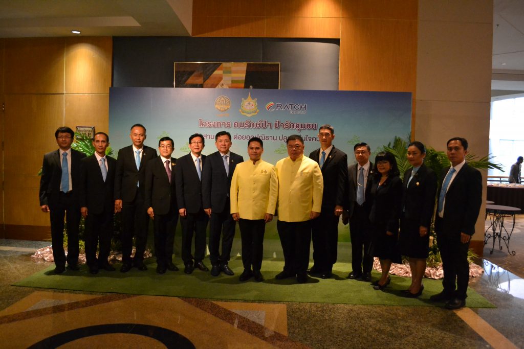 ท่านรัฐมนตรีว่าการกระทรวงทรัพยากรธรรมชาติและสิ่งแวดล้อม (นายวราวุธ ศิลปอาชา) ให้เกียรติเป็นประธานในพิธี โดยมีผู้บริหารระดับสูงของกระทรวงฯ และผู้บริหารบริษัท ราชกรุ๊ป จำกัด (มหาชน) ข้าราชการ เจ้าหน้าที่ ผู้นำป่าชุมชน แขกผู้มีเกียรติและสื่อมวลชนเข้าร่วมพิธี จำนวน 350 คน