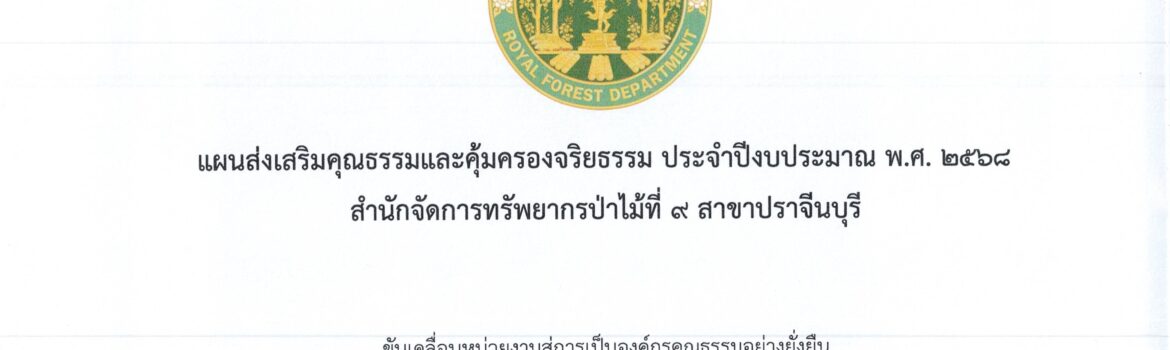 แผนปฏิบัติการส่งเสริมคุณธรรมและคุ้มครองจริยธรรม ประจำปีงบประมาณ พ.ศ. ๒๕๖๘ ของสำนักจัดการทรัพยากรป่าไม้ที่ ๙ สาขาปราจีนบุรี29 เมษายน 2025 by ntzforest