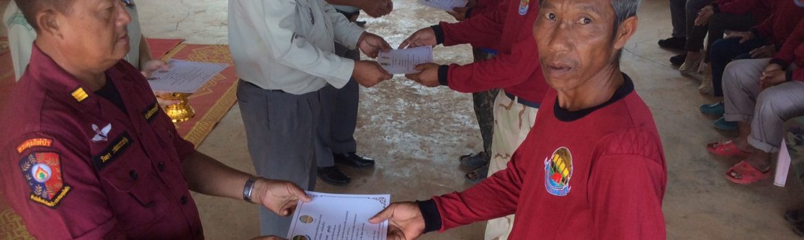 วันนี้ 20 มิถุนายน 2560 เวลา 9.00 น. สำนักจัดการทรัพยากรป่าไม้ที่ 9 สาขาปราจีนบุรี ร่วมกับ มูลนิธิ อนุรักษ์ป่ารอยต่อ 5 จังหวัด โดย เจ้าหน้าที่ส่วนป้องกันรักษาป่าและควบคุมไฟป่า , เจ้าหน้าที่ ศูนย์ส่งเสริมการควบคุมไฟป่าสระแก้ว , เจ้าหน้าที่ชุดสายตรวจนายาว , เจ้าหน้าที่ฝ่ายปกครอง ได้จัดฝึกอบรมโครงการ ราษฎรอาสาพิทักษ์ป่ารอยต่อ 5 จังหวัด หลักสูตร การป้องกันและดับไฟป่า ให้ความรู้ ทั้งภาคทฤษฎี และ สาธิตการดับไฟป่า แก่ชาวบ้านในพื้นที่ ที่เข้าร่วมการฝึกอบรม และ ได้ มอบใบประกาศนียบัตร แก่ ผู้เข้ารับการฝึกอบรม ที่ผ่านการฝึกอบรมทั้งสิ้น 80 คน โดยได้รับการสนับสนุน งบประมาณในการจัดงานครั้งนี้ จากทางมูลนิธิ อนุรักษ์ป่ารอยต่อ 5 จังหวัด โดยมี นายมหัตต์ มงคล ปลัดอาวุโส ทำหน้าที่แทนนายอำเภอ สนามชัยเขต เป็นประธานในการเปิดพิธี และ มีนายวิศิษฐ จันทรโณทัย ผู้อำนวยการส่วนป้องกันรักษาป่าและควบคุมไฟป่า สำนักจัดการทรัพยากรป่าไม้ที่ 9 สาขาปราจีนบุรี เป็นผู้กล่าวรายงาน ณ วัดนายาว หมู่ที่ 15 ตำบลท่ากระดาน อำเภอสนามชัยเขต จังหวัดฉะเชิงเทรา