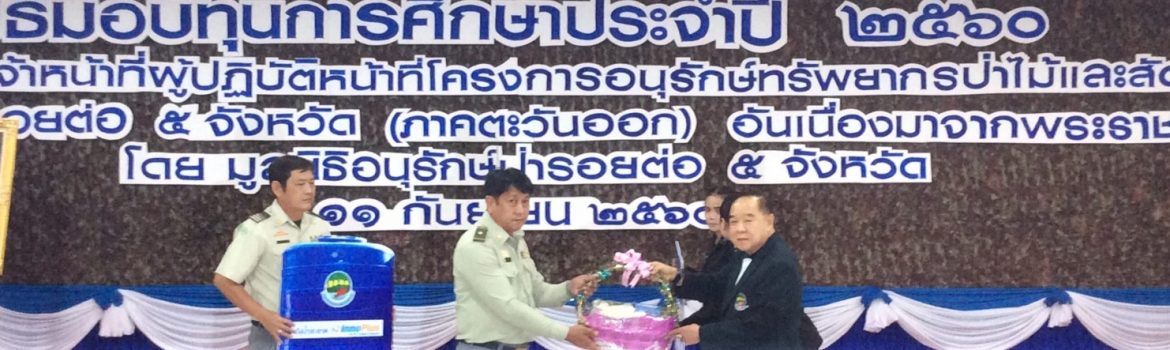 วันที่ 11 กันยายน 2560 เวลา 09.30 น.สำนักจัดการทรัพยากรป่าไม้ที่ 9 สาขาปราจีนบุรี โดย นายธวัชชัย วิจิตร์วงษ์ ผู้อำนวยการสำนักจัดการทรัพยากรป่าไม้ที่ 9 สาขาปราจีนบุรี และ นายเสรี เกาะดี เจ้าพนักงานป่าไม้ชำนาญงาน ได้ให้การต้อนรับ นางอำนวยพร ชลดำรงค์กุล ผู้ตรวจราชการกรมป่าไม้ แทนอธิบดีกรมป่าไม้ เพื่อ เข้าร่วมประชุม และ มอบทุนการศึกษาของมูลนิธิอนุรักษ์ป่ารอยต่อ 5 จังหวัด แก่ บุตร-ธิดา เจ้าหน้าที่ที่ปฏิบัติงาน อยู่ในพื้นที่ เขตป่ารอยต่อ 5 จังหวัด จากมูลนิธิอนุรักษ์ป่ารอยต่อ 5 จังหวัด โดยมี พลเอกประวิตร วงษ์สุวรรณ ประธานกรรมการมูลนิธิอนุรักษ์ป่ารอยต่อ 5 จังหวัด เป็น ประธาน ในการประชุม และ การ ดำเนินการ มอบทุนการศึกษา ในครั้งนี้ รวมถึง มอบเงินค่าสินไหมทดแทนจากการทำประกันชีวิตกลุ่ม แก่ ญาติ ของนายสมเกียรติ ชื้นเย็นดี พนักงานพิทักษ์ป่า ส.2 ณ มหาวิทยาลัยเทคโนโลยีราชมงคลตะวันออก วิทยาเขตจันทบุรี อำเภอเขาคิชฌกูฎ จังหวัดจันทบุรี