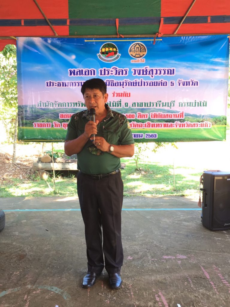 วันที่ ๒๒ กันยายน ๒๕๖๓ สำนักจัดการทรัพยากรป่าไม้ที่ ๙ สาขาปราจีนบุรี โดยนายธวัชชัย วิจิตร์วงษ์ ผู้อำนวยการสำนักฯ ทำพิธีส่งมอบถังบรรจุน้ำขนาด ๑,๕๐๐ ลิตร ซึ่งรับมอบจากมูลนิธิอนุรักษ์ป่ารอยต่อ ๕ จังหวัด ให้แก่ วัด โรงเรียน ชุมชนและหน่วยงาน ในพื้นที่รับผิดชอบ จังหวัดฉะเชิงเทราและจังหวัดสระแก้ว รวมจำนวน ๒๖ ใบ ณ หน่วยป้องกันรักษาป่าที่ ฉช.๓(หนองคอก) ตำบลคลองตะเกรา อำเภอท่าตะเกียบ จังหวัดฉะเชิงเทรา