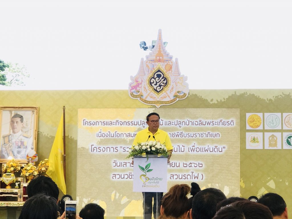 วันที่ 22 มิถุนายน 2562 (เวลา 09.30 น. – 12.00 น.) นายธวัชชัย วิจิตร์วงษ์ ผู้อำนวยการสำนักจัดการทรัพยากรป่าไม้ที่ 9 สาขาปราจีนบุรี ร่วมพิธีเปิดโครงการปลูกต้นไม้และปลูกป่าเฉลิมพระเกียรติเนื่องในวโรกาสมหามงคลพระราชพิธีบรมราชาภิเษก ภายใต้ชื่องาน “รวมใจไทย ปลูกต้นไม้ เพื่อแผ่นดิน” ณ สวนวชิรเบญจทัศ (สวนรถไฟ) เขตจตุจักร กทม. โดยมีนายวิจารณ์ สิมาฉายา ปลัดกระทรวงทรัพยากรธรรมชาติและสิ่งแวดล้อม เป็นประธาน นายอรรถพล เจริญชันษา อธิบดีกรมป่าไม้ เป็นผู้กล่าวรายงาน ผู้ร่วมงานประกอบด้วย หัวหน้าส่วนราชการ , ข้าราชการ, บริษัทเอกชน, ประชาชน และดารานักแสดง จำนวนประมาณ 500 คน มีการแจกจ่ายกล้าไม้มีค่าทางเศรษฐกิจ จำนวน 1,000 ต้น