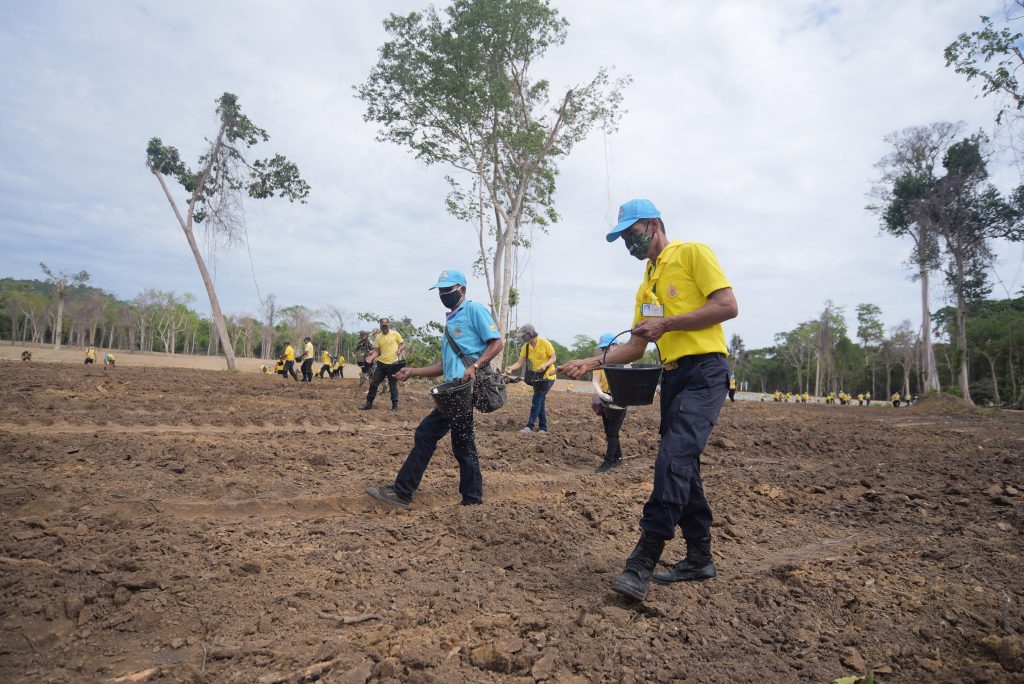 วันที่ 19 พฤษภาคม 2563 นายธรา สุโพธิ์เงิน นายอำเภอสนามชัยเขต พร้อมนายธวัชชัย วิจิตร์วงษ์ ผู้อำนวยการสำนักจัดการทรัพยากรป่าไม้ที่ 9 สาขาปราจีนบุรี นำเจ้าหน้าที่ป่าไม้ ผู้นำชุมชน ประชาชนจิตอาสา ร่วมกันดำเนินการปลูกหญ้ารูซี่ บริเวณพื้นที่รอบอ่างเก็บน้ำวราวุธ และอ่างเก็บน้ำจตุพร ท้องที่ป่าสงวนแห่งชาติป่าแควระบม -ป่าสียัด