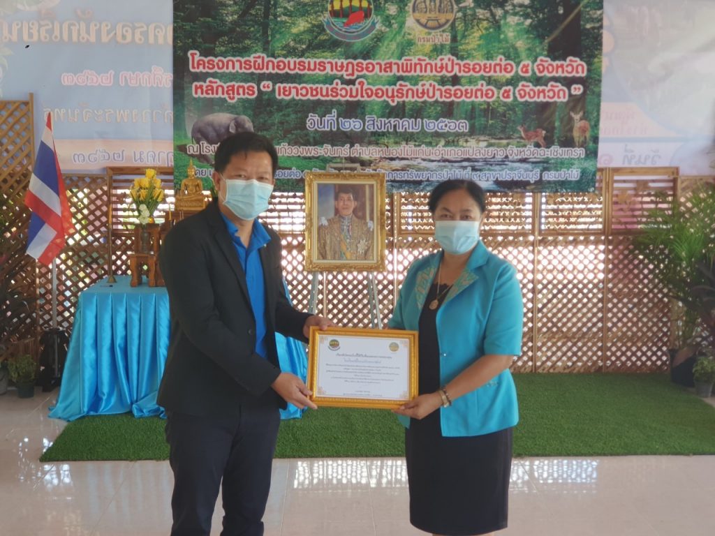 วันที่ 26 สิงหาคม 2563 สำนักจัดการทรัพยากรป่าไม้ที่ 9 สาขาปราจีนบุรี ได้จัดโครงการฝึกอบรมราษฎรอาสาพิทักษ์ป่ารอยต่อ 5 จังหวัด หลักสูตร “ เยาวชนร่วมใจอนุรักษ์ป่ารอยต่อ 5 จังหวัด ” โดยมีนายพัลลภ นักเจริญ ปลัดอำเภอแปลงยาว เป็นประธานในพิธี มี นายธวัชชัย วิจิตร์วงษ์ ผู้อำนวยการสำนักฯ เป็นผู้กล่าวรายงานมีการมอบเกียรติบัตรและกล้าไม้แก่โรงเรียนวัดโกรกแก้ววงพระจันทร์ โดยมีการบรรยายให้ความรู้ในเรื่องเกี่ยวกับ ประวัติความเป็นมาของป่ารอยต่อ 5 จังหวัด ความรู้เกี่ยวกับช้างป่า และ การบรรยายให้ความรู้ในเรื่องของการป้องกันไฟป่า และ การดับไฟป่า แก่นักเรียน โดยมีนักเรียนผู้ผ่านการฝึกอบรม ทั้งสิ้นจำนวน 100 คน ณ โรงเรียนวัดโกรกแก้ววงพระจันทร์ ตำบลหนองไม้แก่น อำเภอแปลงยาว จังหวัดฉะเชิงเทรา