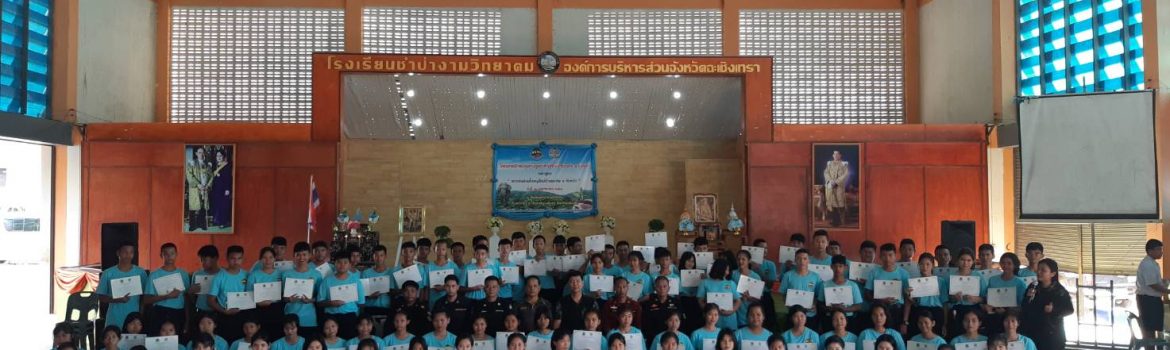 วันที่ 16 พฤศจิกายน 2561 เวลา 09.00 น. สำนักจัดการทรัพยากรป่าไม้ที่ 9 สาขาปราจีนบุรี ได้จัดโครงการฝึกอบรมราษฎรอาสาพิทักษ์ป่ารอยต่อ 5 จังหวัด หลักสูตร เยาวชนร่วมใจ อนุรักษ์ป่ารอยต่อ 5 จังหวัด มีนายศักรินทร์ ศรีสมวงศ์ ปลัดอาวุโส อำเภอสนามชัยเขต เป็นประธานในการเปิดพิธี มี นายธวัชชัย วิจิตร์วงษ์ ผู้อำนวยการสำนักจัดการทรัพยากรป่าไม้ที่ 9 สาขาปราจีนบุรี เป็นผู้กล่าวรายงาน ณ โรงเรียนชำป่างามวิทยาคม ตำบลท่ากระดาน อำเภอสนามชัยเขต จังหวัดฉะเชิงเทรา โดยมีผู้ผ่านการอบรมทั้งสิ้นจำนวน 102 คน