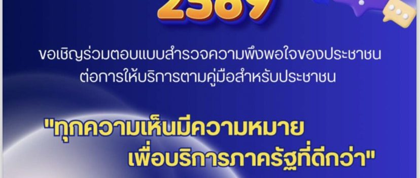 ขอเชิญร่วมตอบแบบสำรวจความพึงพอใจของประชาชน ต่อการดำเนินงานตามคู่มือสำหรับประชาชน
