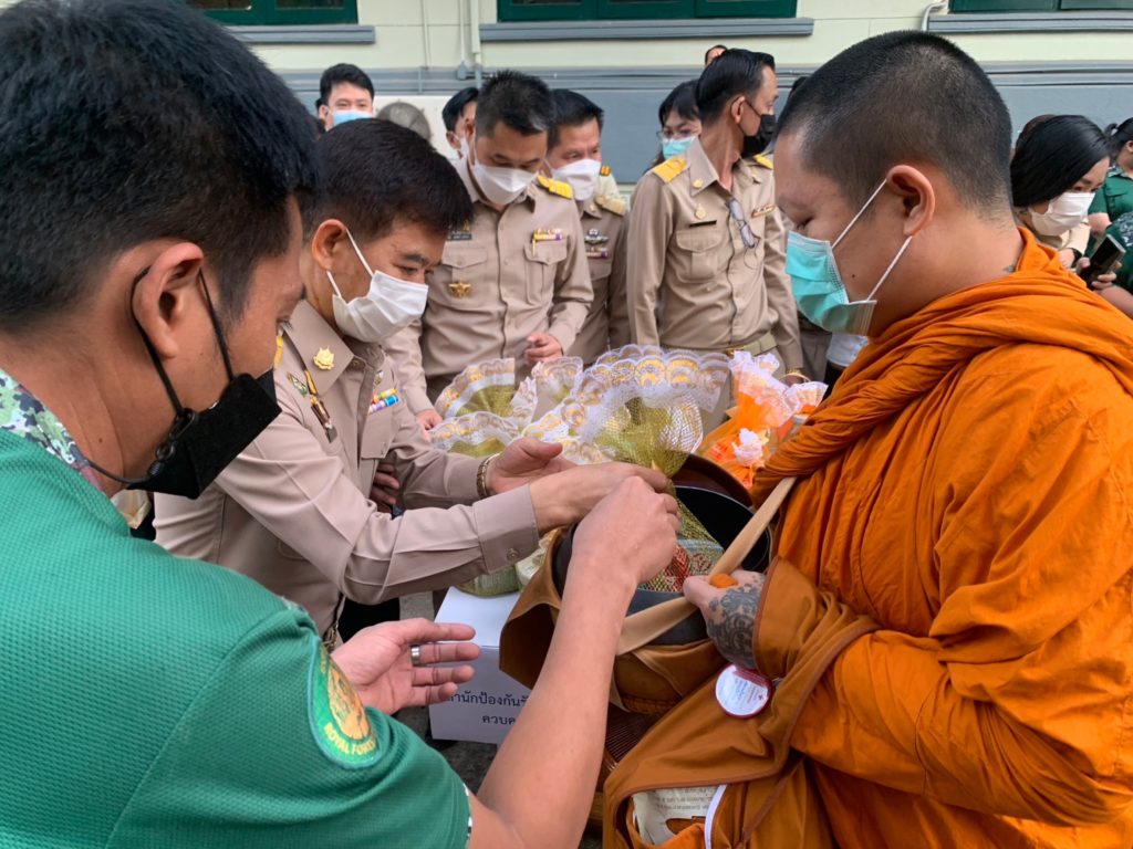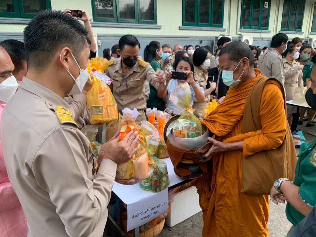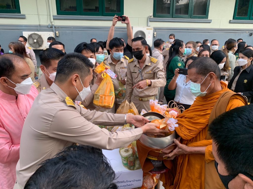 วันที่ 27 ธันวาคม 2565 นายอุธร สุทธิมิตร ผู้อำนวยการสำนักป้องกันรักษาป่าและควบคุมไฟป่า พร้อมด้วย นายโชคชัย เลิศเกียรติวงศ์ ผู้อำนวยการส่วนแผนงานและสารสนเทศ ร่วมพิธีทำบุญตักบาตร เนื่องในวันขึ้นปีใหม่ ประจำปี พ.ศ. 2566 ณ บริเวณด้านหน้าอาคารเทียมคมกฤส กรมป่าไม้ เพื่อเป็นสิริมงคลแก่หน่วยงาน ข้าราชการ พนักงานราชการ และเจ้าหน้าที่ในสังกัด และเพื่อเป็นการสืบสานวัฒนธรรมอันดีงามของหน่วยงานที่ปฏิบัติสืบต่อกันมา โดยมี นายสุรชัย อจลบุญ อธิบดีกรมป่าไม้ และนายรัชฎา สุริยกุล ณ อยุธยา อธิบดีกรมอุทยานแห่งชาติ สัตว์ป่า และพันธุ์พืช เป็นประธานในพิธี