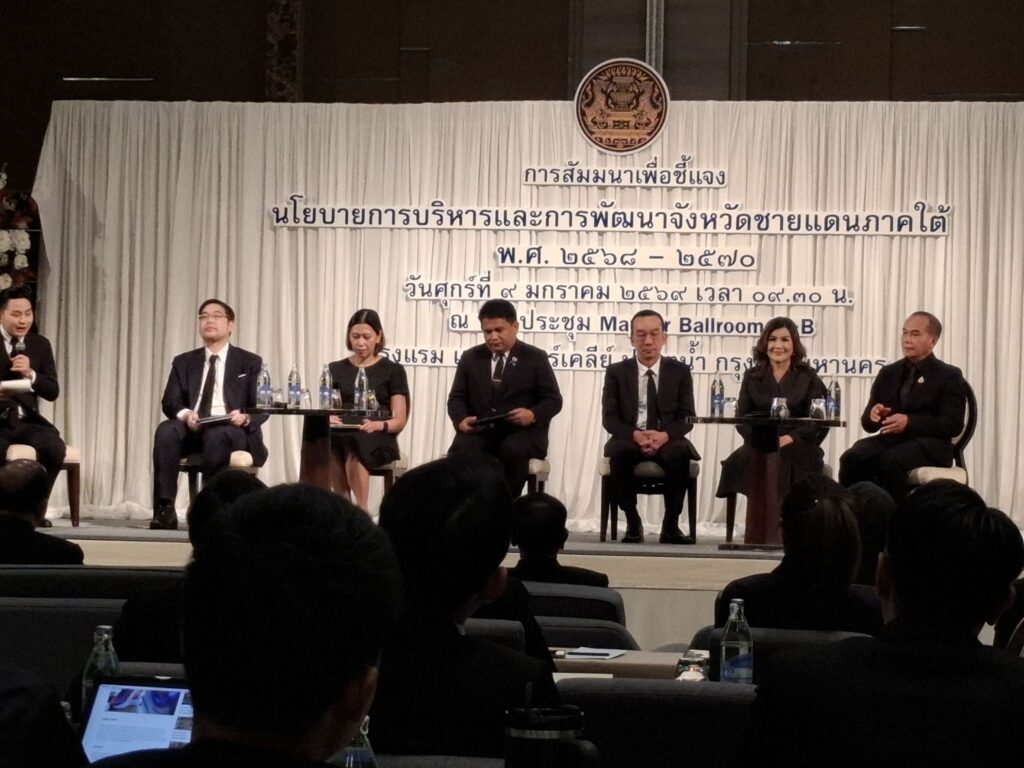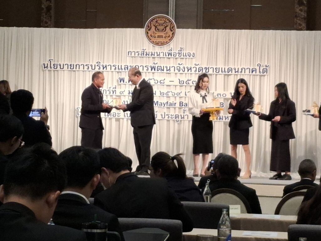 วันศุกร์ที่ 9 มกราคม 2569 นายเจน รักสุข ผู้อำนวยการส่วนแผนงานและสารสนเทศ ได้เข้าร่วมการสัมมนาเพื่อชี้แจงนโยบายการบริหารและการพัฒนาจังหวัดชายแดนภาคใต้ พ.ศ. 2568 – 2570 ณ ห้องเมย์แฟร์ บอลรูม เอ – บี ชั้น 11 โรงแรม เดอะ เบอร์เคลีย์ ประตูน้ำ กรุงเทพฯ
