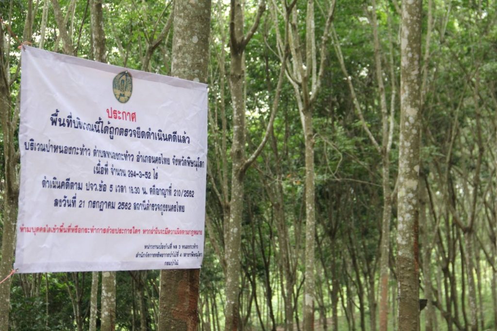 จากการลงพื้นที่ตรวจสอบ เจ้าหน้าที่พบการปลูกยางพาราลักษณะแปลงใหญ่ ซึ่งต้นยางพาราอายุประมาณ 7 – 10 ปี ติดบริเวณชายป่า พบไม้มีค่าขนาดใหญ่ในพื้นที่ และมีลำธารธรรมชาติผ่ากลางสวนยาง ข้อมูลการสืบสวนพบว่า เจ้าของเป็นกลุ่มทุนจากประจวบคีรีขันธ์ เจ้าหน้าที่จึงได้ใช้เครื่องมือตรวจหาค่าพิกัด พบถูกบุกรุก 66 ไร่เศษ จึงได้จัดทำบันทึกการตรวจยึด พร้อมนำเอกสารหลักฐานที่เกี่ยวข้องทั้งหมด นำส่งพนักงานสอบสวนสถานีตำรวจภูธรนครไทย เพื่อดำเนินการสืบสวนสอบสวนหาตัวผู้กระทำผิดมาดำเนินคดีตามกฎหมายต่อไป ขณะเดียวกันได้นำป้ายประกาศ ไปติดบริเวณพื้นที่ที่ได้ตรวจยึดดำเนินคดีตั้งแต่วันที่ 21 กรกฎาคมที่ผ่านมา 2 จุด พื้นที่รวมกว่า 390 ไร่ อีกด้วย