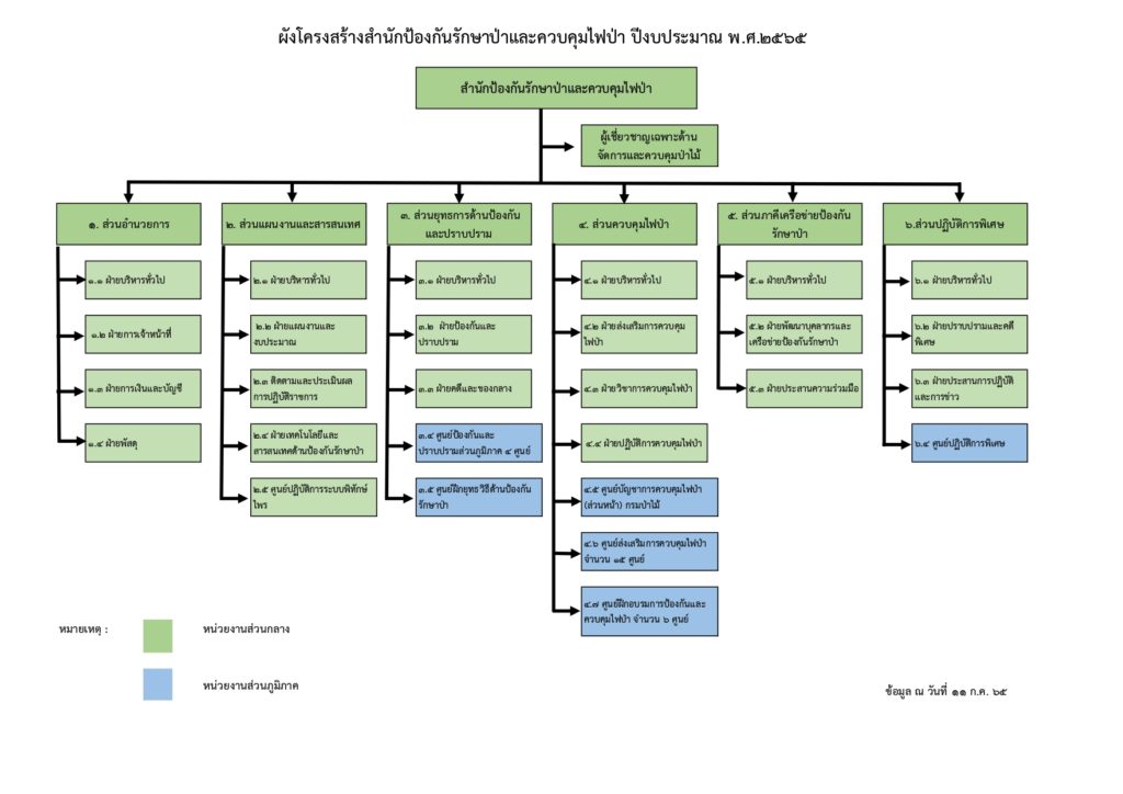 ผังโครงสร้างสำนักป้องกันรักษาป่าและควบคุมไฟป่า ปีงบประมาณ พ.ศ. 2565